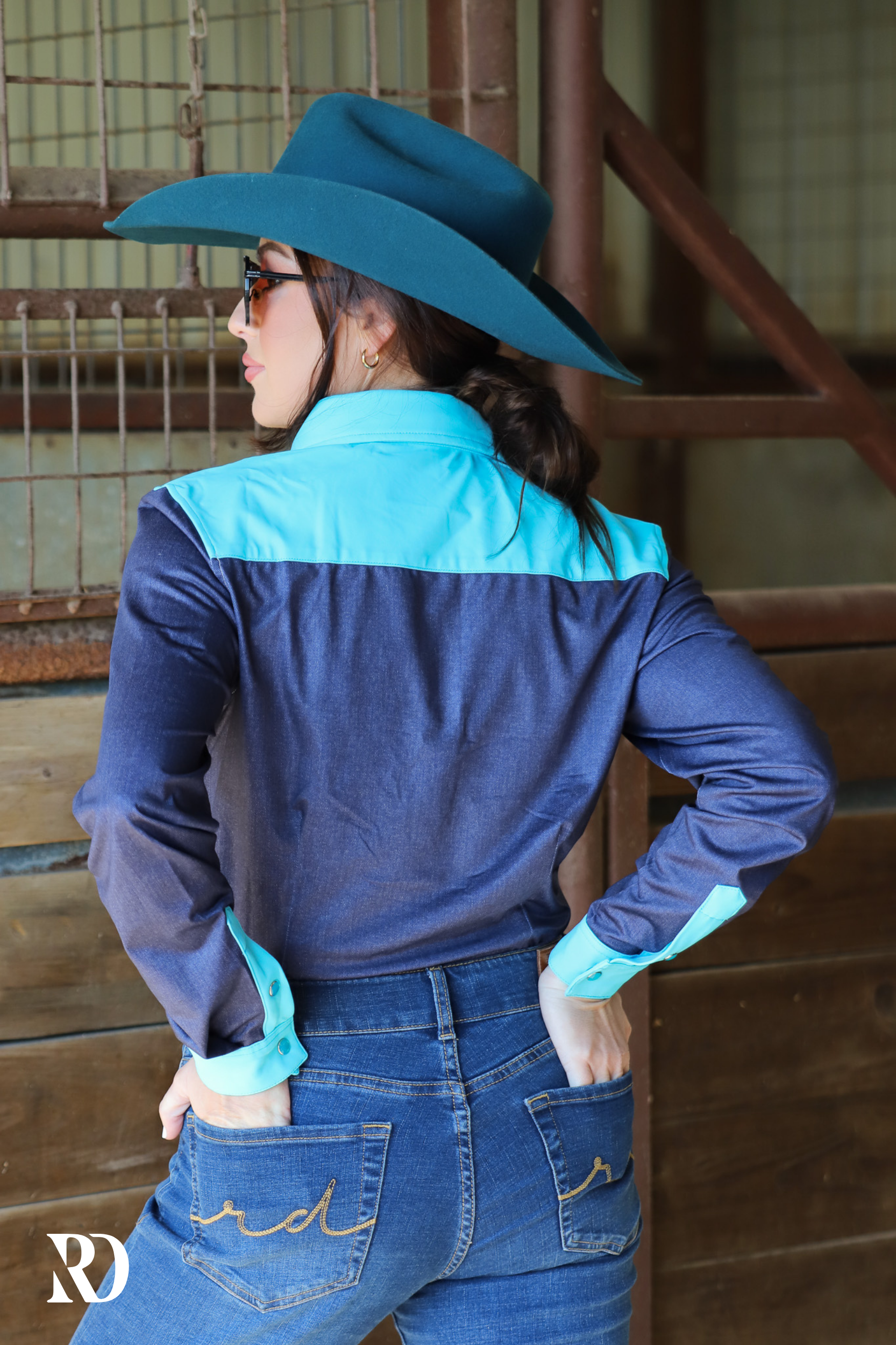 DENIM & TURQ PERFORMANCE RODEO SHIRT