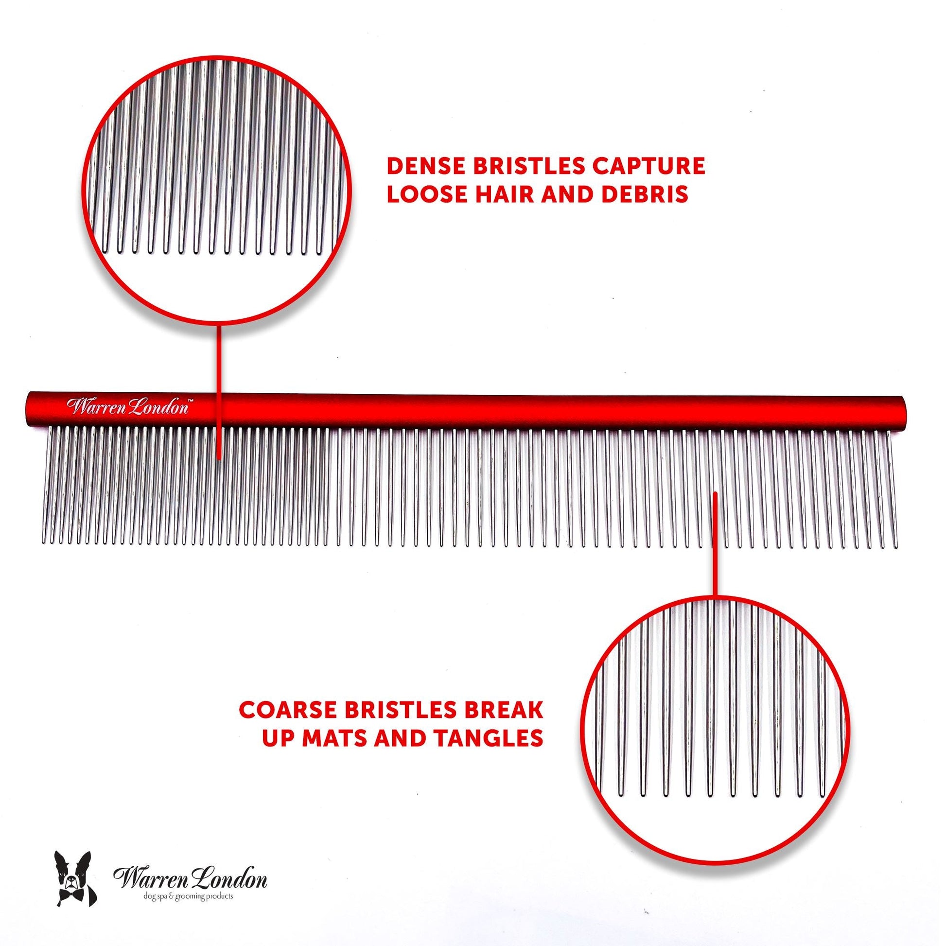 - GROOMING - The dense arrangement of bristles on the comb allow for thorough grooming; efficiently capturing loose hair, debris, and tangles with each stroke. The coarse texture of the bristles aid in breaking up mats and tangles, gently working through the coat without causing discomfort or pain for your pet.