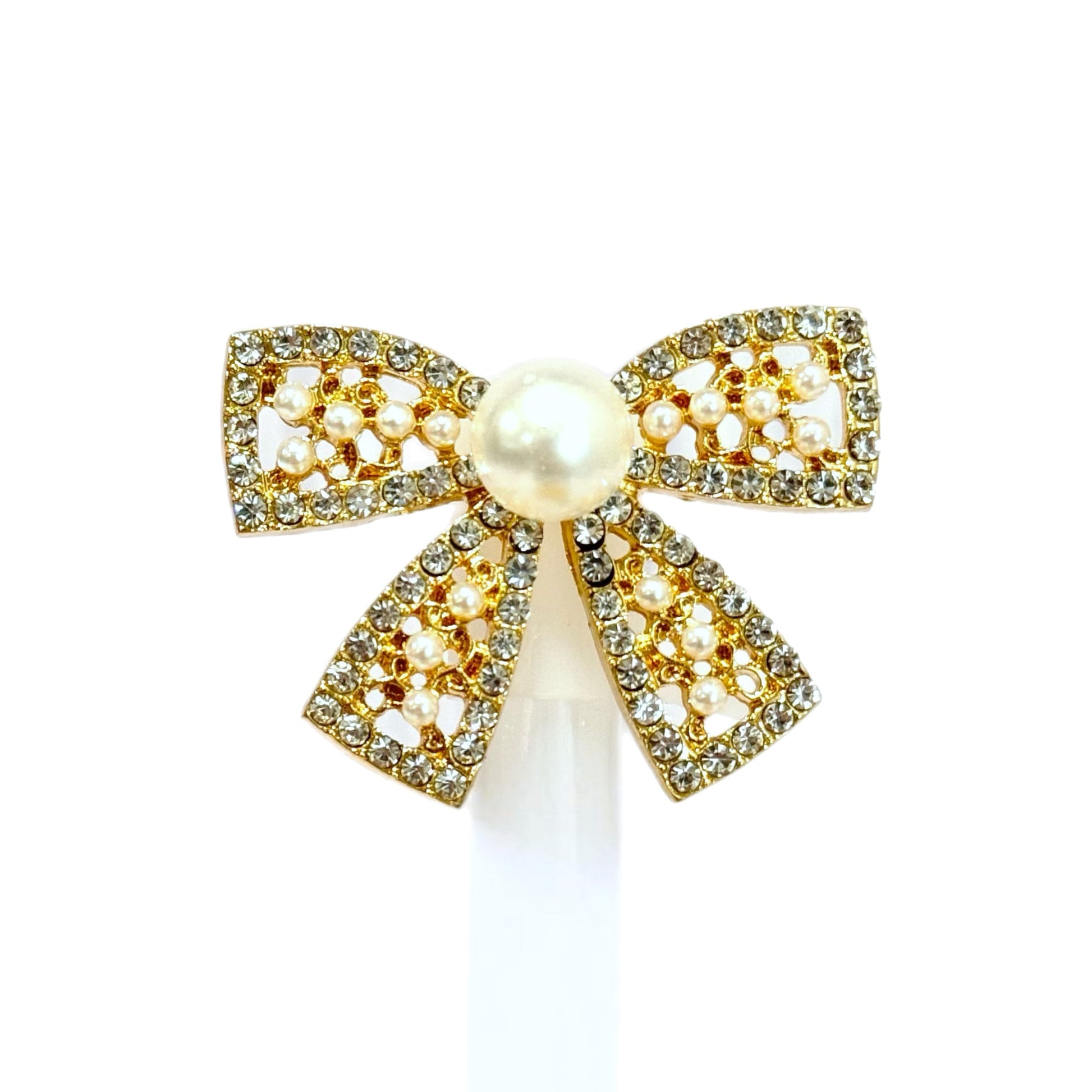 Diamonds & Pearls Bow Deluxe Metal Straw Topper