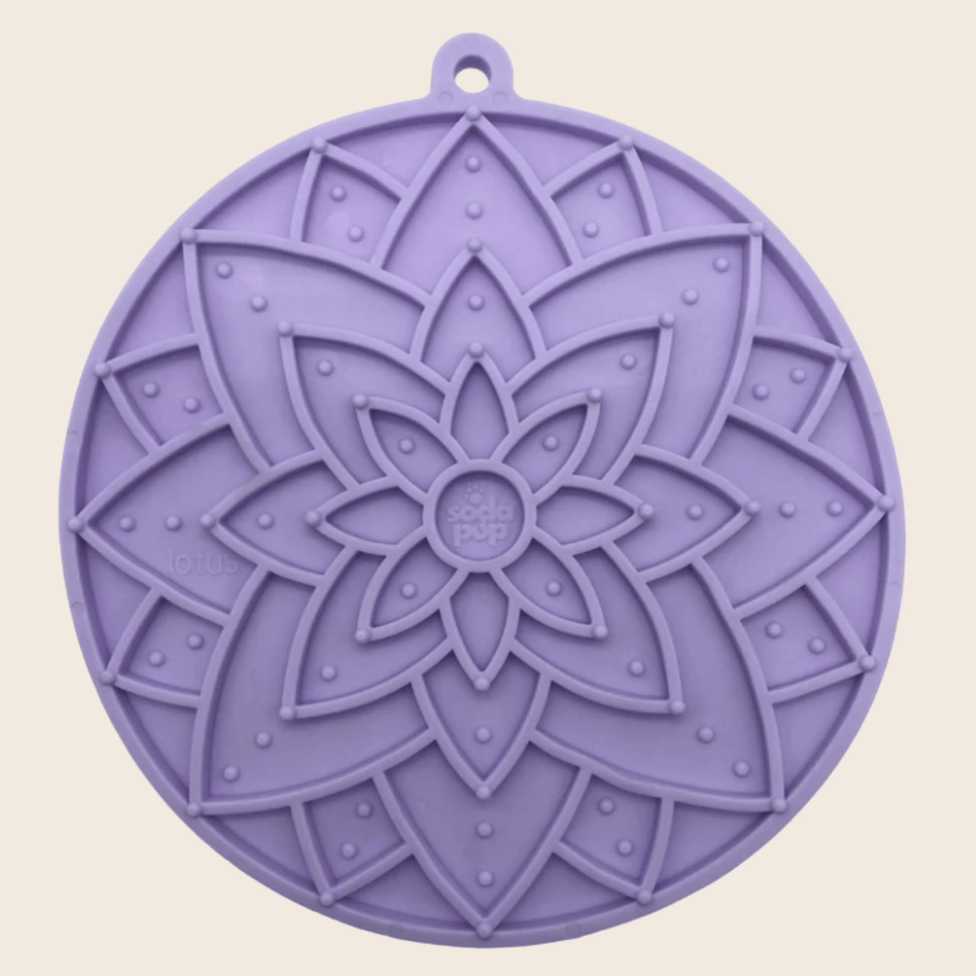Sodapup licking mats are dishwasher-safe (top rack only). For handwashing, soak in warm, soapy water and use a brush to remove food residue.