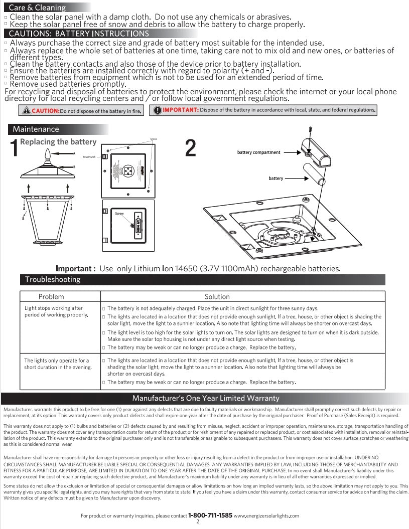 - Includes 2 rechargeable 14650 3.7V 1100mAh