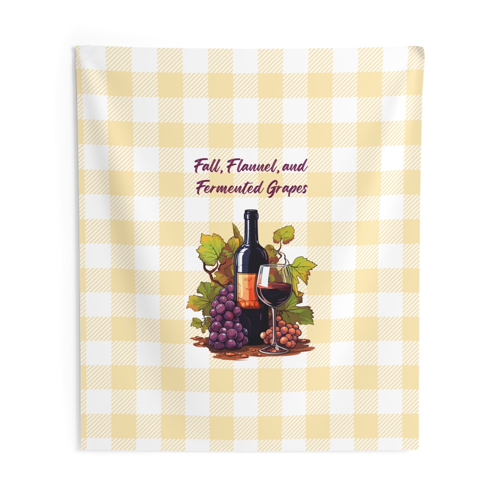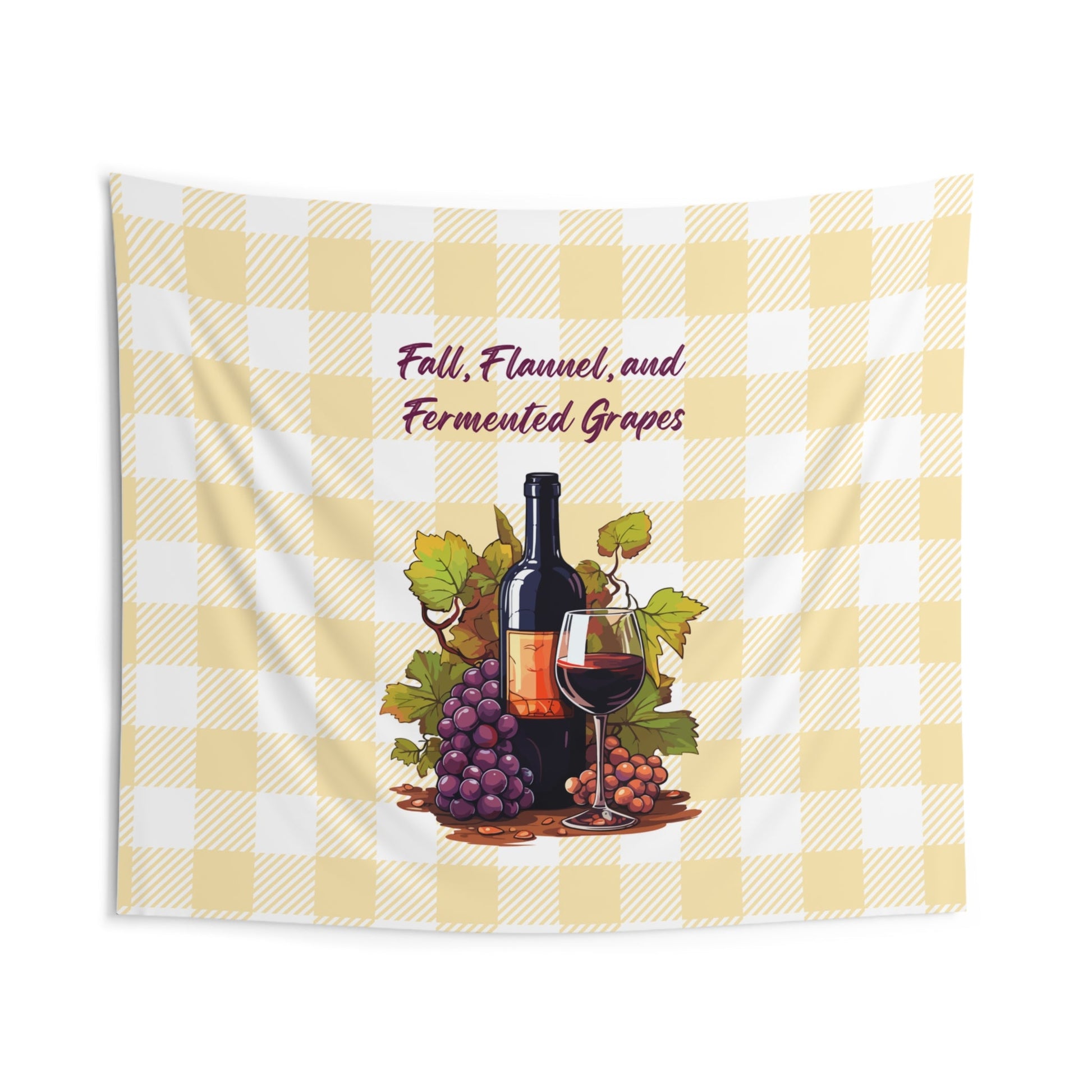Fall, Flannel and Fermented Grapes - Fall Vineyard Tapestry, Cozy home decor, Autumn wall hanging