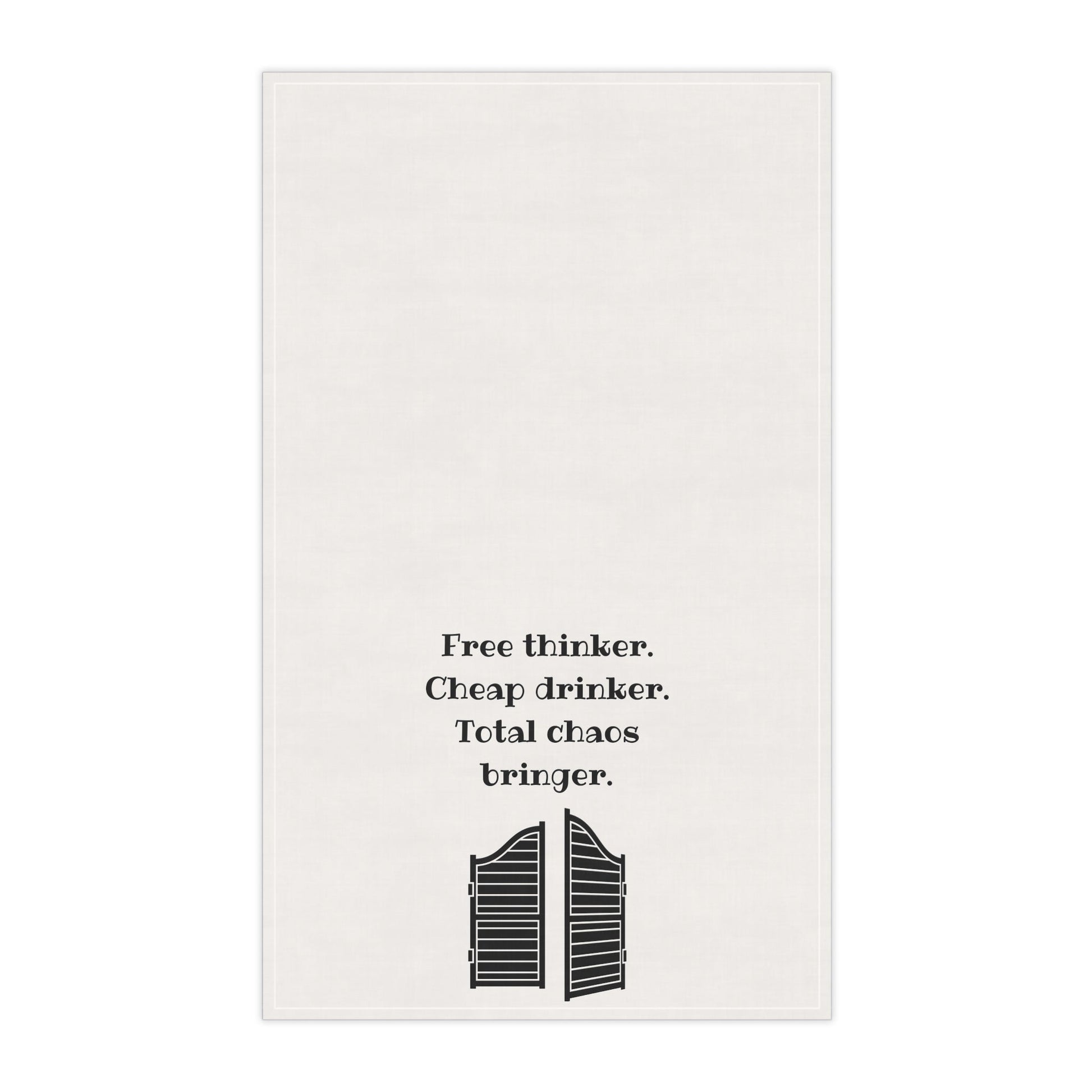"Free Thinker, Cheap Drinker. Total chaos bringer." Dish Towel. Western Kitchen and Bar Decor, housewarming gift, funny party decor