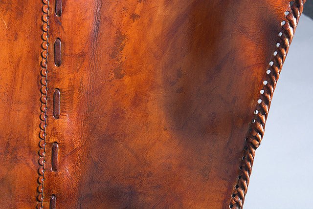 Expertly handcrafted from top genuine hair-on leather, the natural leather lounge chair radiates luxury and individuality. Lightweight folding chair rich dark brown finish is complemented by natural variations in color and markings, making every piece truly one of a kind. The leather is meticulously hand-stitched and hand-laced to ensure exceptional quality and durability, adding a touch of artisanal craftsmanship to this timeless design.