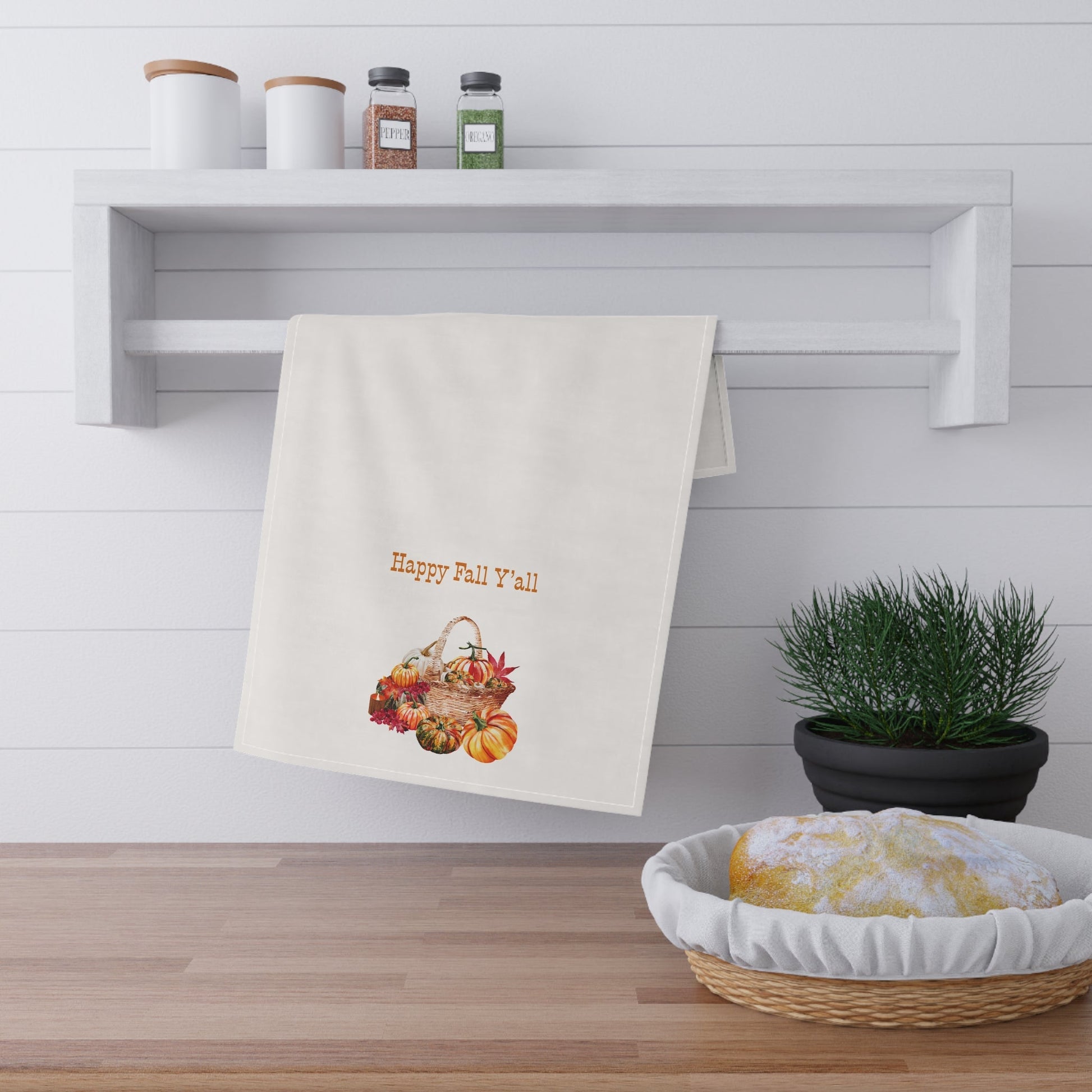 "Happy Fall Y'all!" Autumn Kitchen Tea Towels, Cozy Fall Home Decor, Thanksgiving Gift, Welcome to Fall Y'all, Farmhouse Style Kitchen Linen