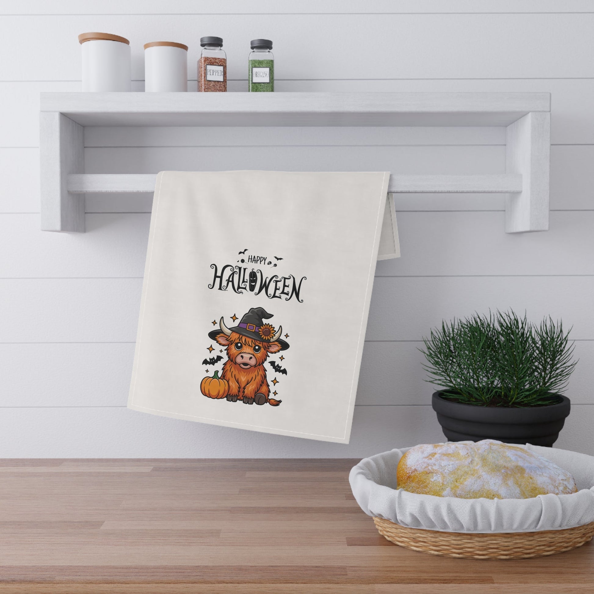 Happy Halloween cute Tea Towels, Festive Decor, Farmhouse Kitchen Accessories, Cute Highland Cow Design, Holiday Gift Ideas