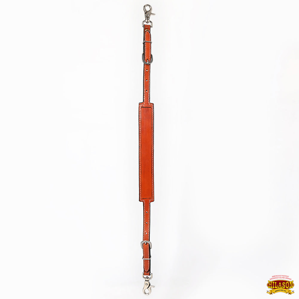Breast Collar Wither Strap: This dark brown-colored You are looking at gorgeous leather breast collar wither straps made by Hilason with Hand Tool Floral Carving Tooling Design; These spur straps have been made with genuine high-quality leather. The hardware used is solid stainless steel.