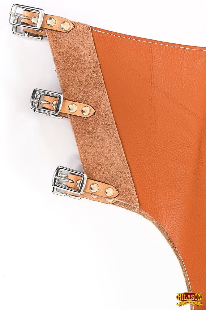 Hilason Western Bull Riding Chinks Chaps Adult Pro Rodeo Bronc Leather Tan