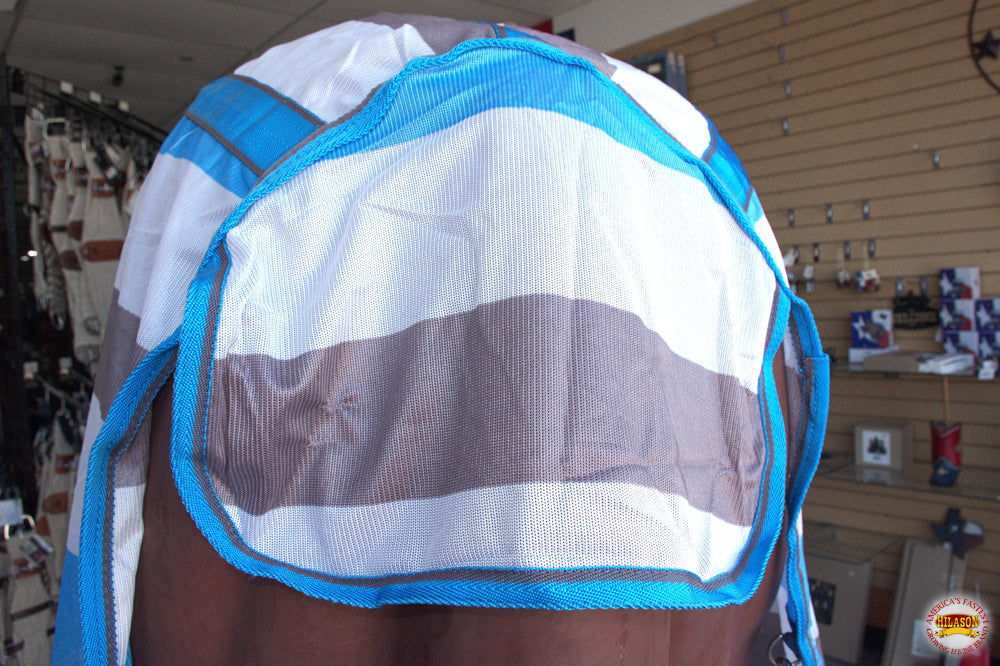 FEATURE: This Hilason Horse Fly Sheet is crafted from durable poly/nylon mesh for maximum airflow while keeping bugs and insects away. It offers UV protection and includes a double front buckle, adjustable leg straps, and secure neck and belly closures. Designed for comfort and function, it also features multiple gussets to allow your horse freedom of movement. Horse fly sheet UV protection is ideal for protection and performance during warm weather.