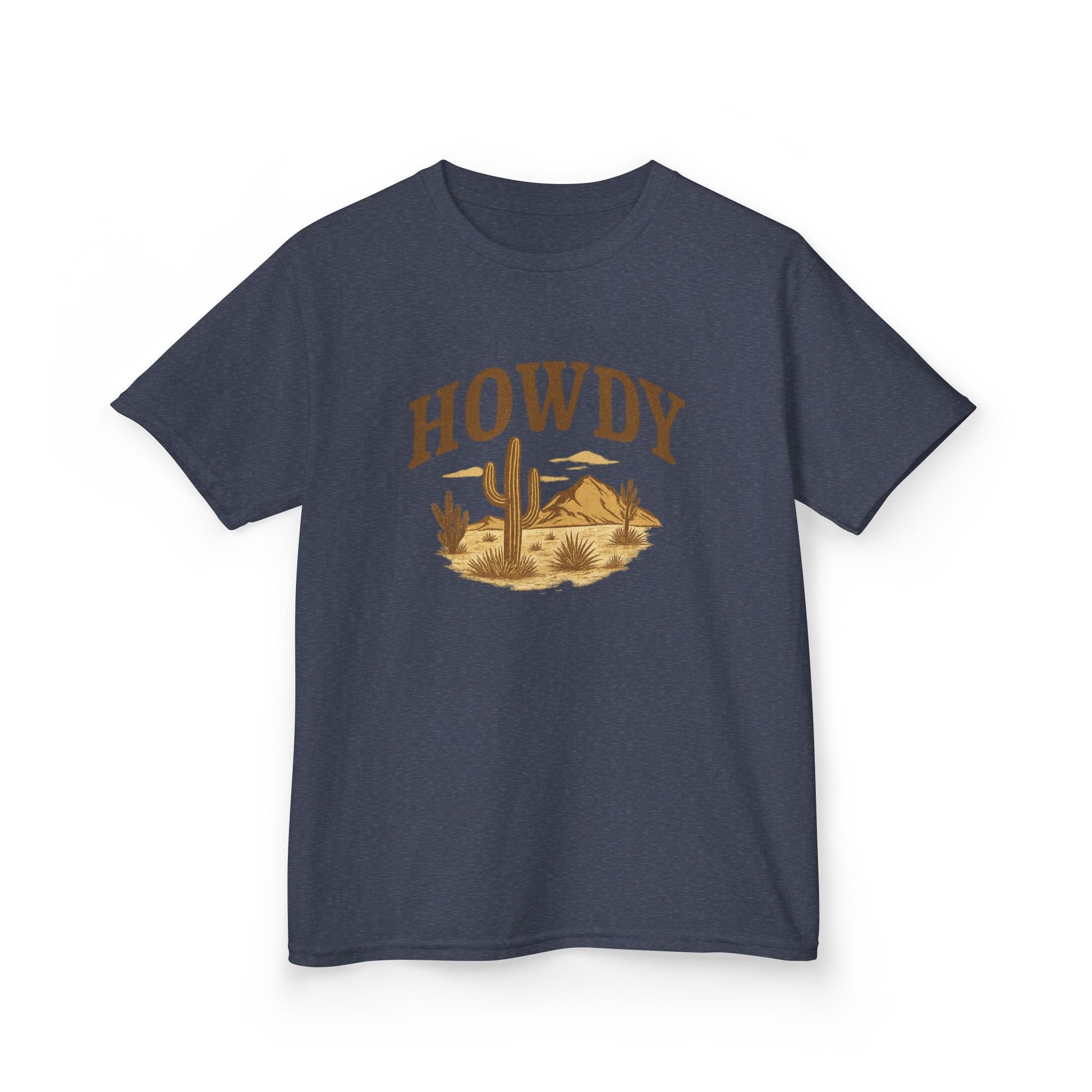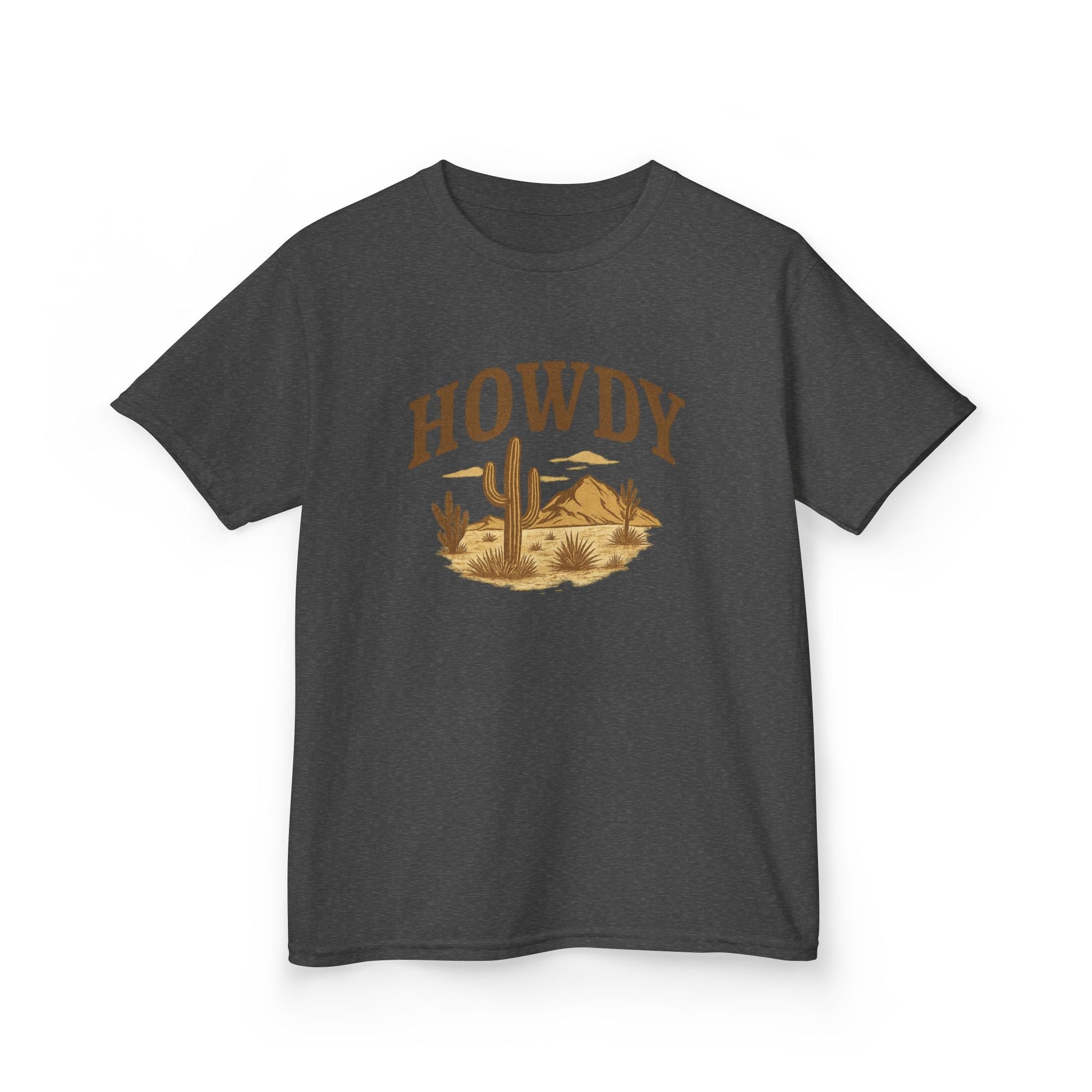 This kids t-shirt features a fun and trendy southwestern desert theme, perfect for little adventurers. Made with soft and durable US cotton, it offers a comfortable fit for daily wear. Ideal for children, this tee is REACH certified and sourced ethically from Bangladesh. The ribbed knit collar and shoulder tape ensure durability and shape retention, while the unique DTF inner neck labels add a special touch.
