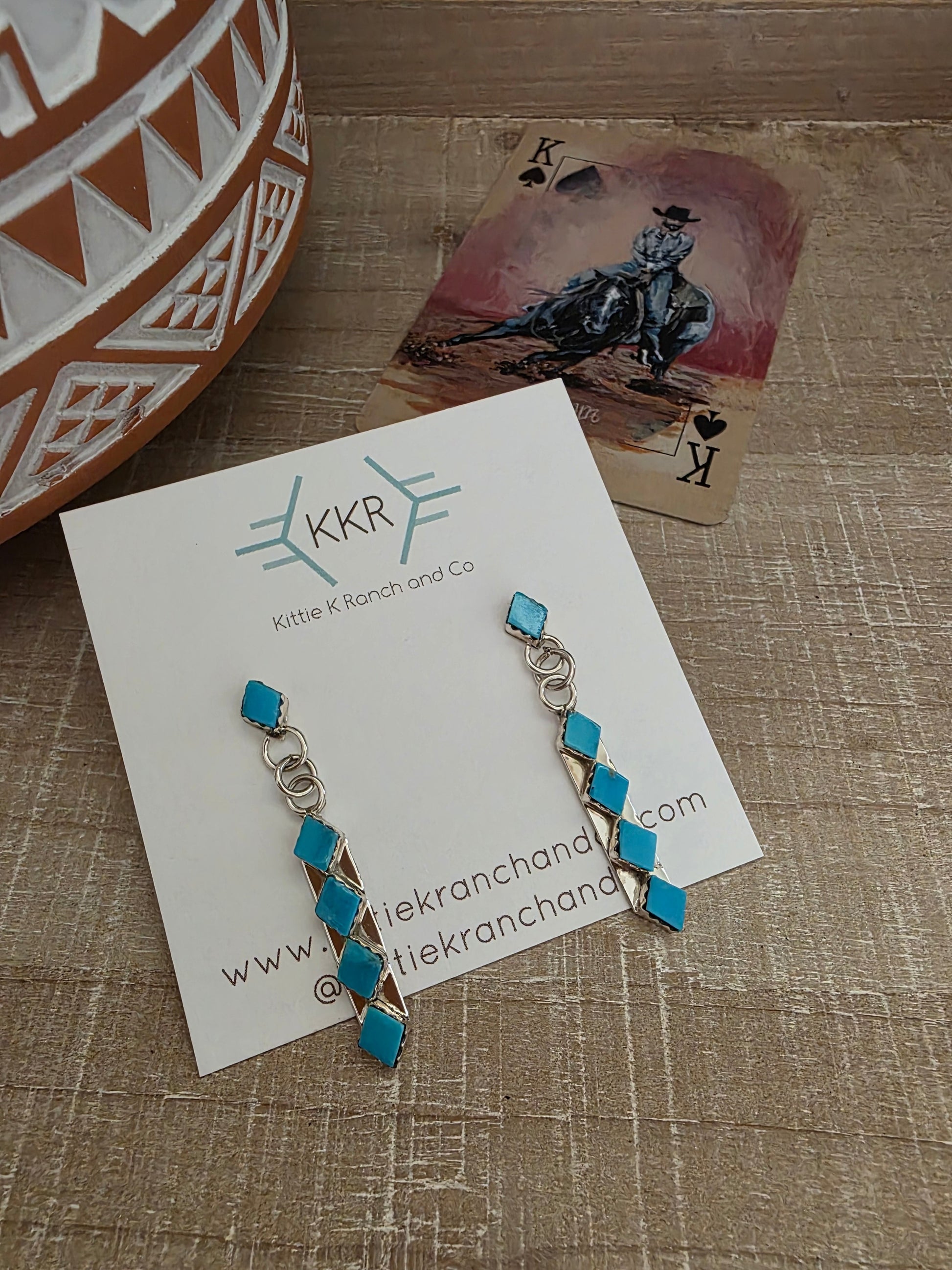 IVY LAMB TURQUOISE DIAMOND CUT DANGLE EARRINGS