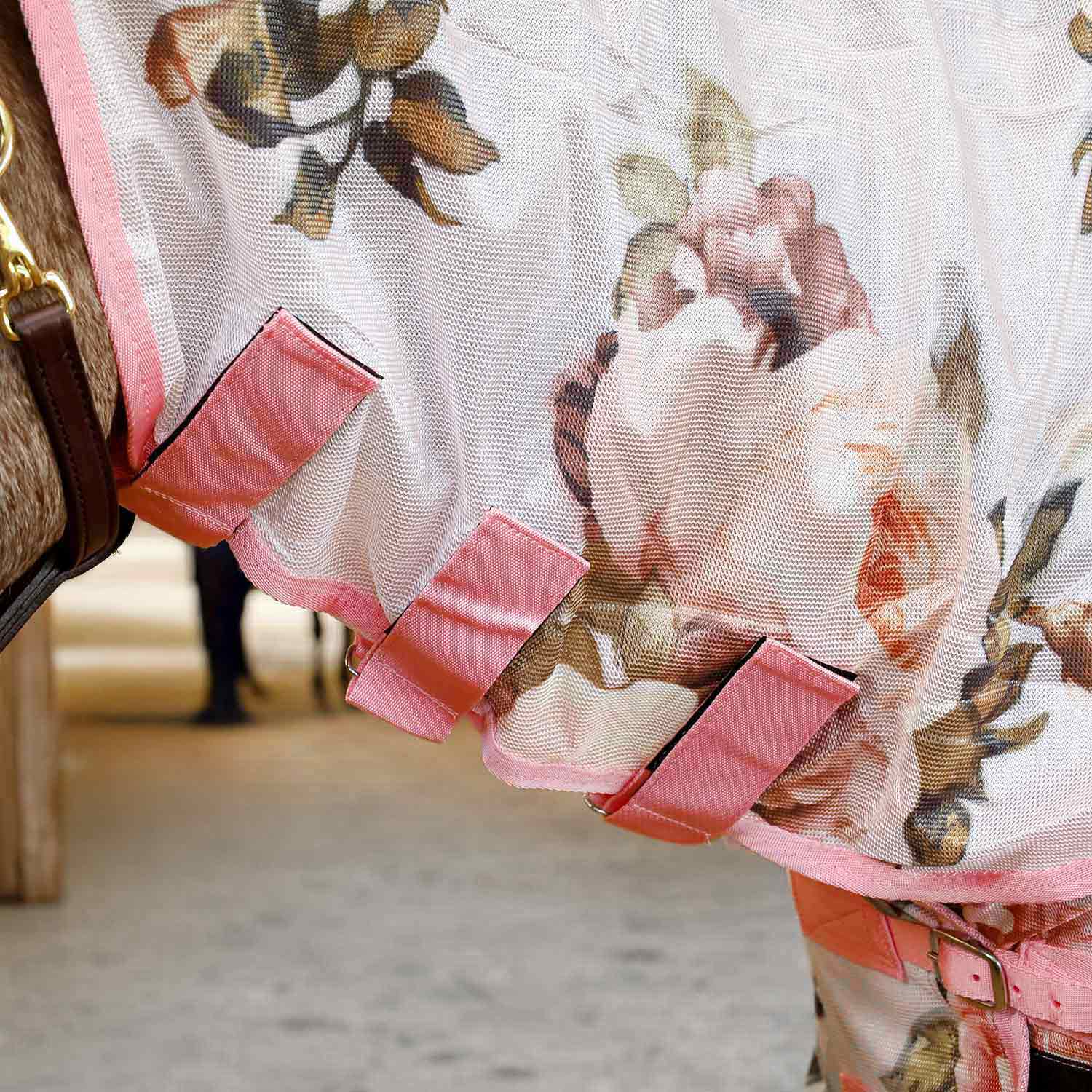 The Jeffers Expression Softmesh Combo Neck Fly Sheet is designed with exclusive Jeffers patterns to offer stylish and effective protection from flies and mosquitoes. Featuring an attached neck cover, this sheet shields your horse from poll to tail while allowing breathability through its lightweight mesh. Shoulder gussets provide freedom of movement, and adjustable straps ensure a secure, custom fit for all-day comfort.