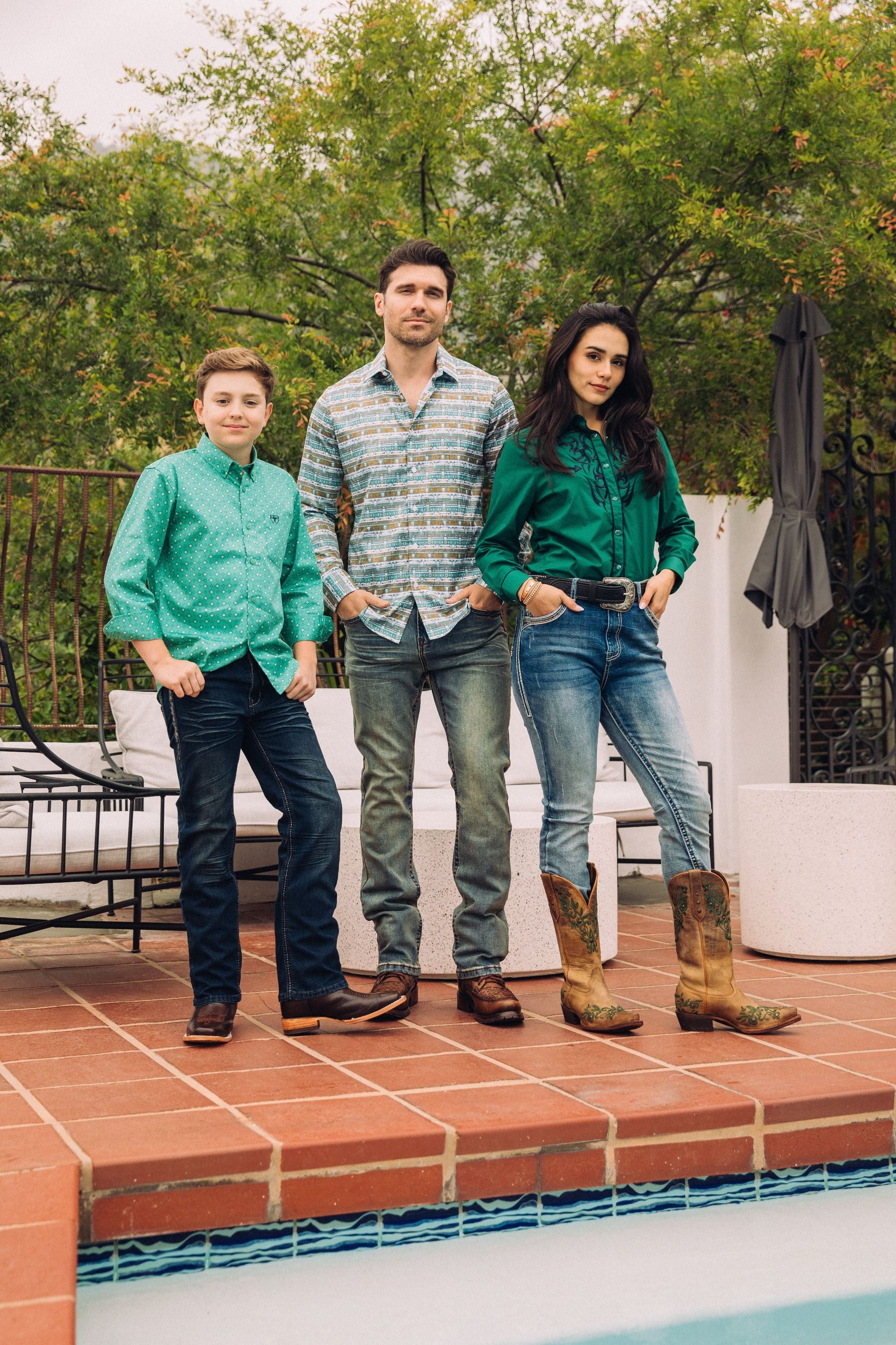 Kid's Cotton Green Monogram Digital Print Dress Shirt