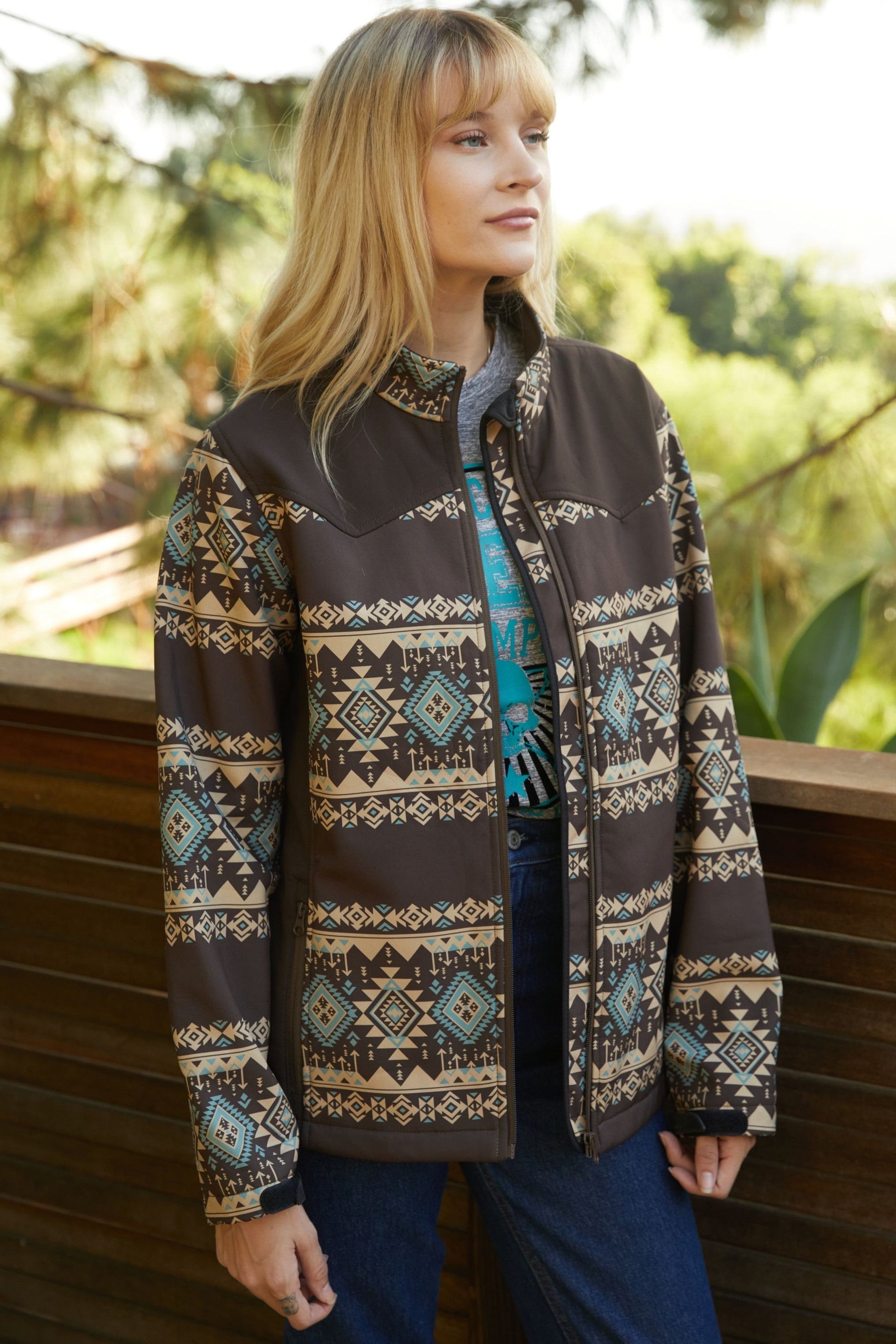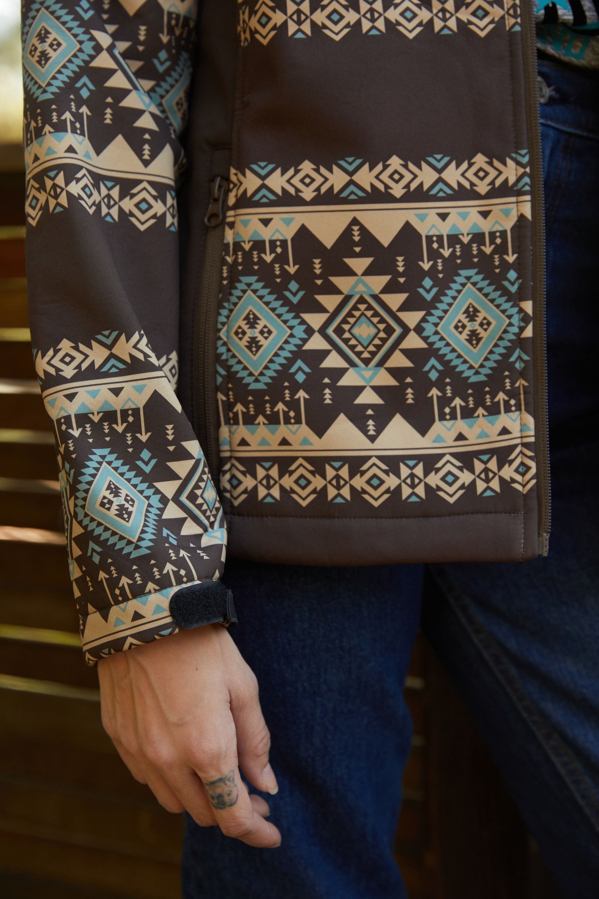 Description: Stay stylish and dry with our Ladies Softshell Water-Resistant Jacket featuring an eye-catching Aztec embroidery design. This jacket offers both functionality and fashion with its water-resistant properties and unique detailing. The adjustable cuffs with Velcro closure ensure a customized fit, while the cozy interior keeps you warm in cooler weather. The short, stand-up collar adds a modern touch to this versatile jacket.