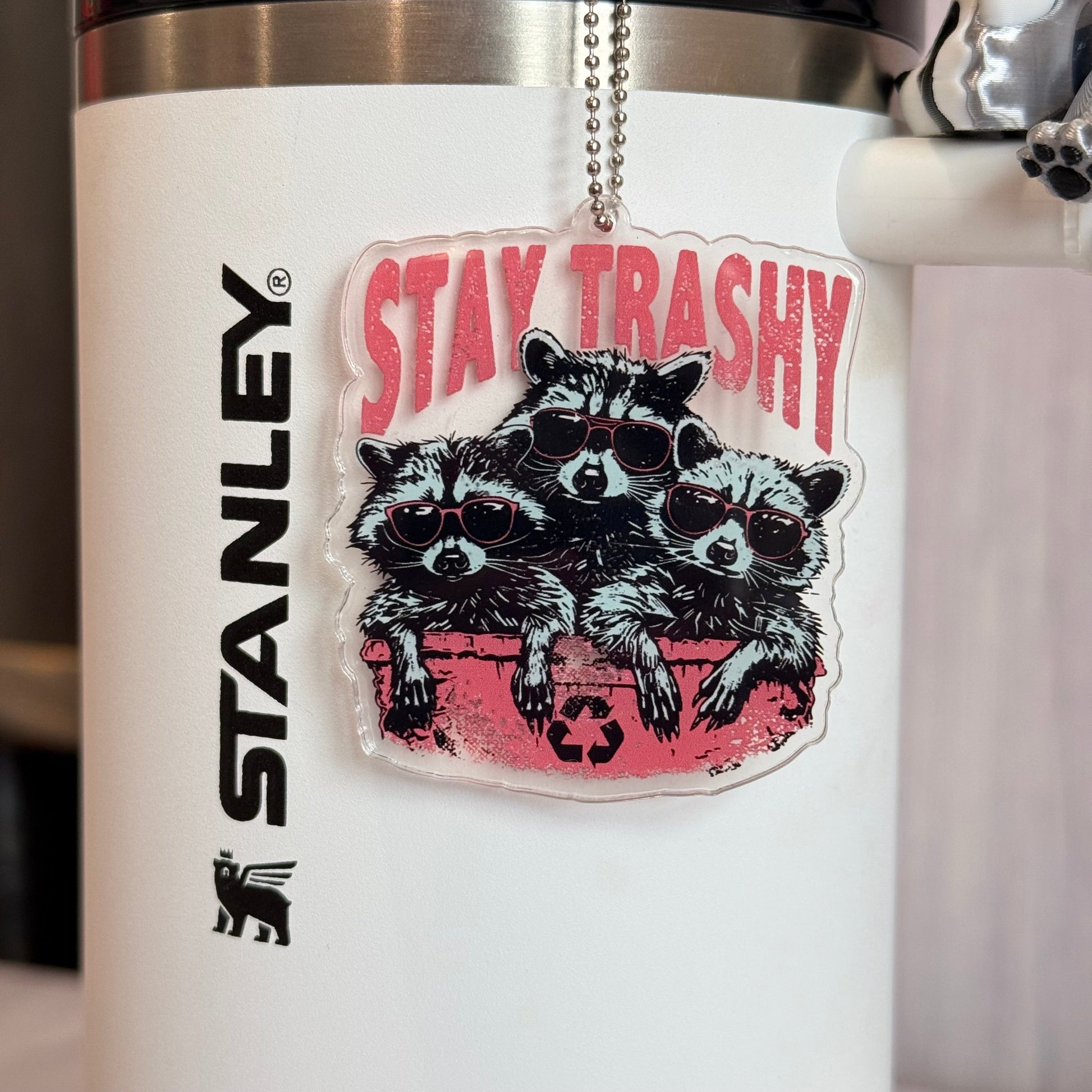 Large Stay Trashy Raccoon- Tumbler Handle Charm