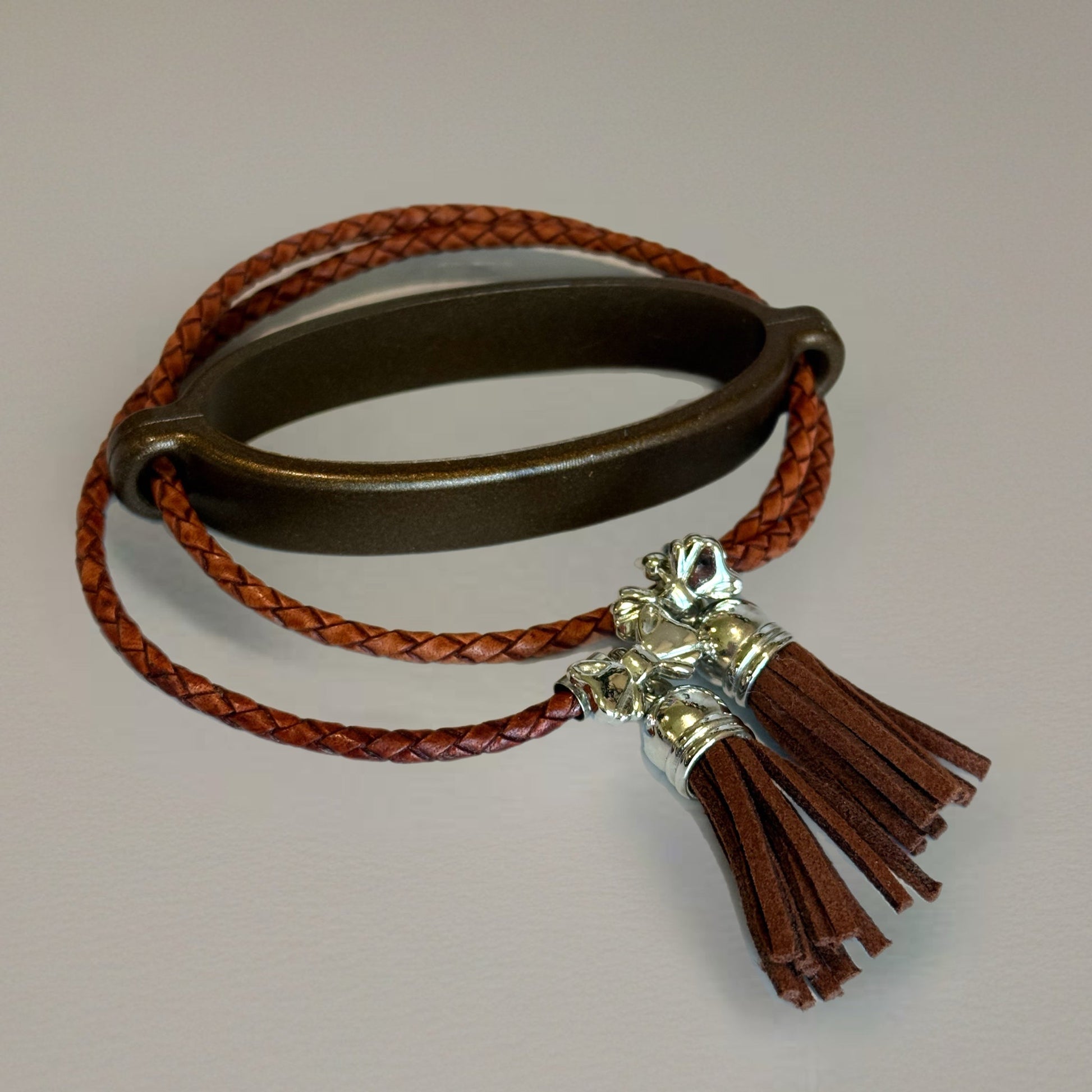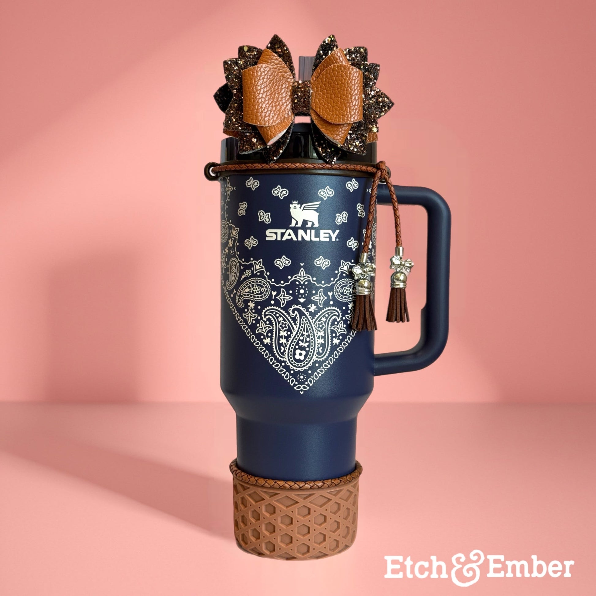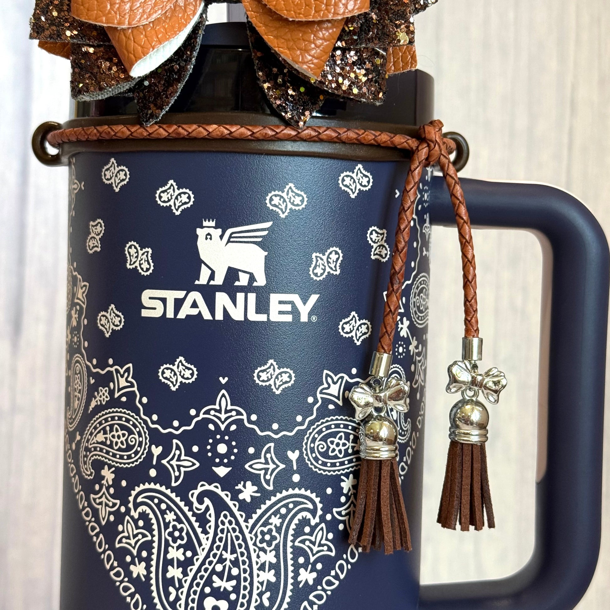 Wrap your cup in country-cool style with our Lariat Luxe leather Tumbler Collar — the perfect finishing touch for the new Post Malone x Stanley collaboration or your favorite HydroJug Howdy and Outwest editions. Handcrafted from rich braided leather with silver-detailed tassels, this piece brings rugged charm and effortless flair to every sip.