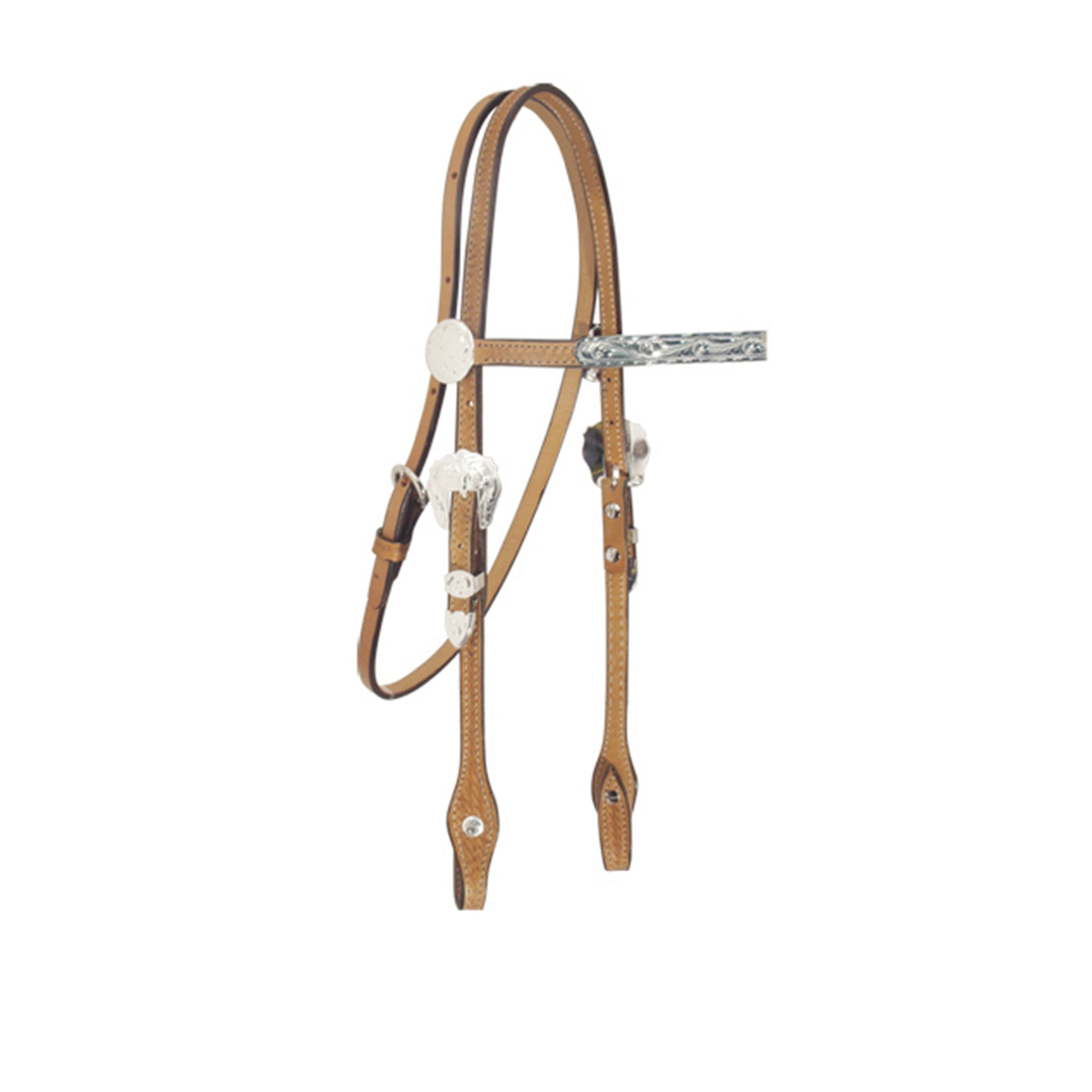 1/2" Pony straight browband headstall basket tooled with silver bars and silver hardware.