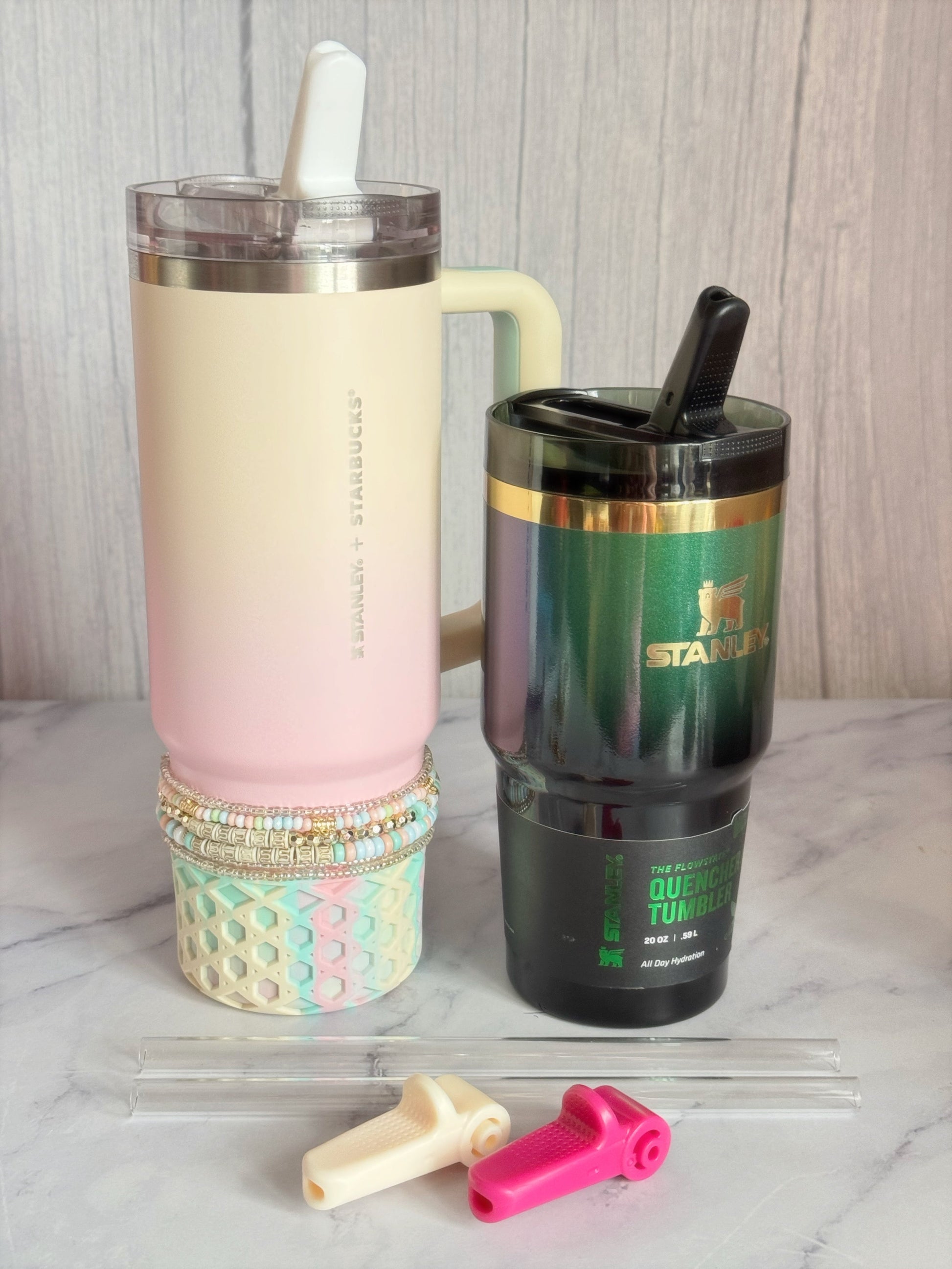 The removable tumbler lid set includes two lids, two straws, two additional colored straws, and two silicone sealing rings—providing everything you need for a seamless and stylish drinking experience with your Stanley 20-30 oz cups. Comes with everything shown in the image. In order to work with the 20oz tumblers, you can cut the straw to desired length or use without.