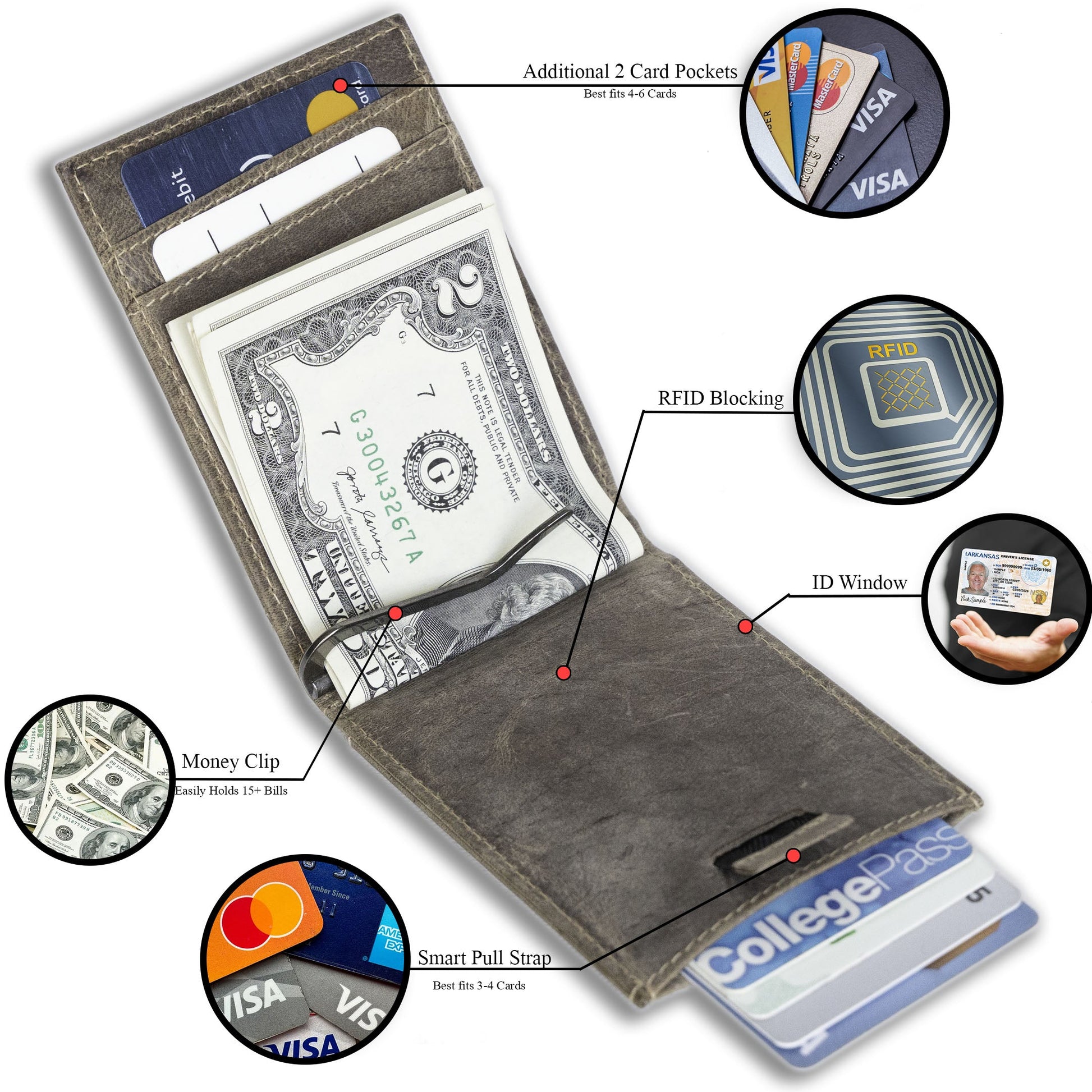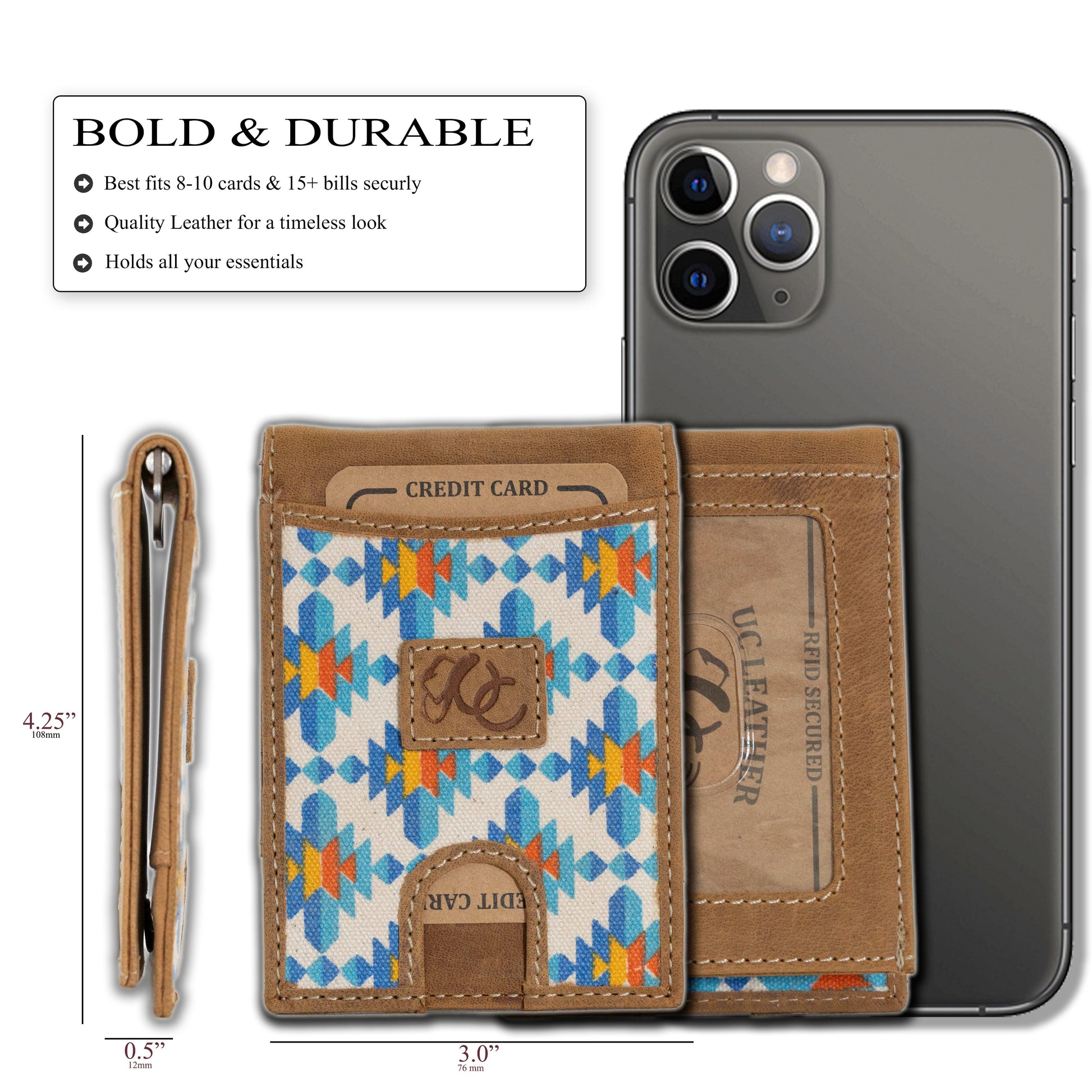 Secure Money Clip: Features a sturdy clip on the back to keep your cash tidy and secure.