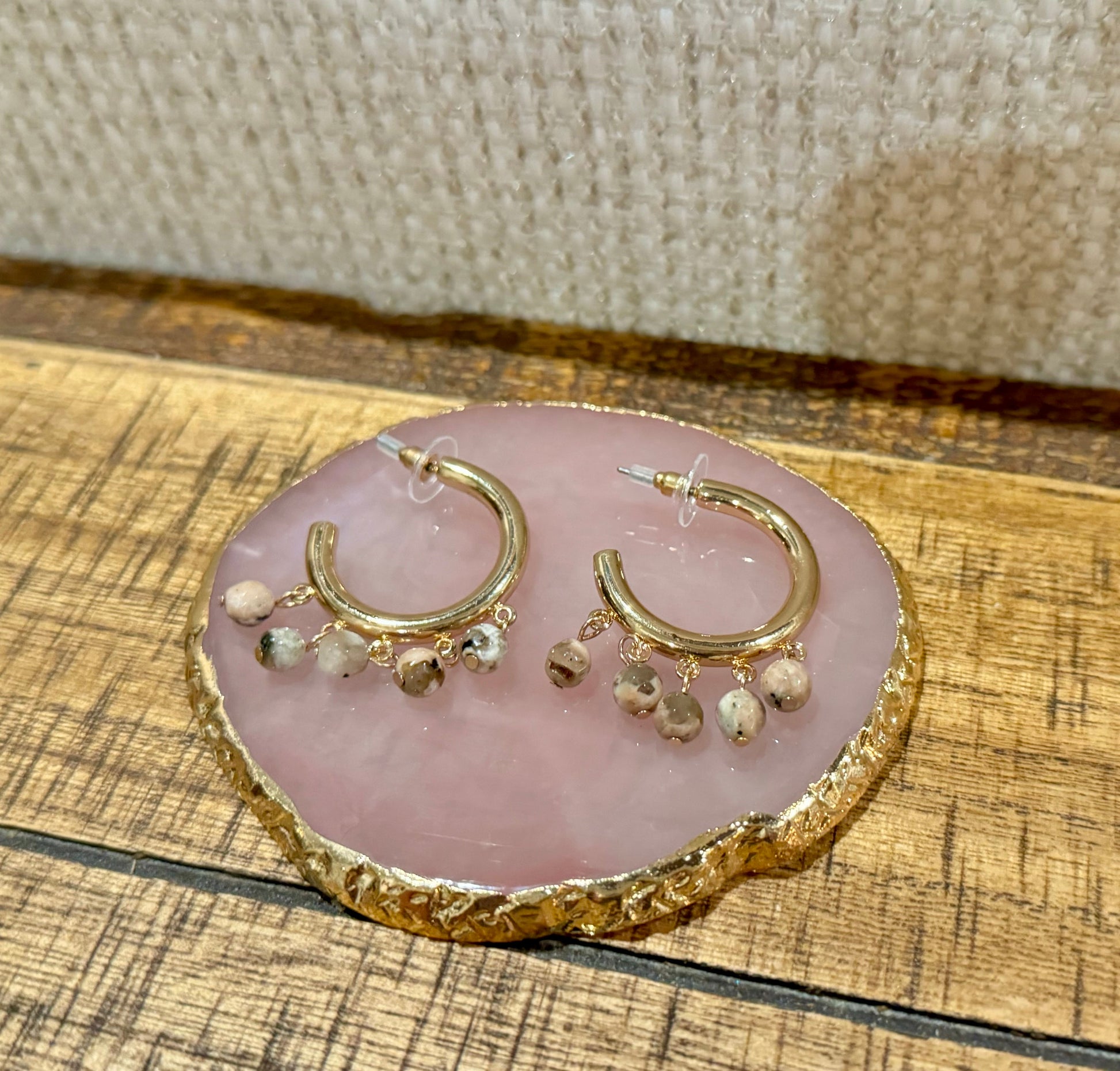Gorgeous gold hoops with mauve, pink, and neutral stones.