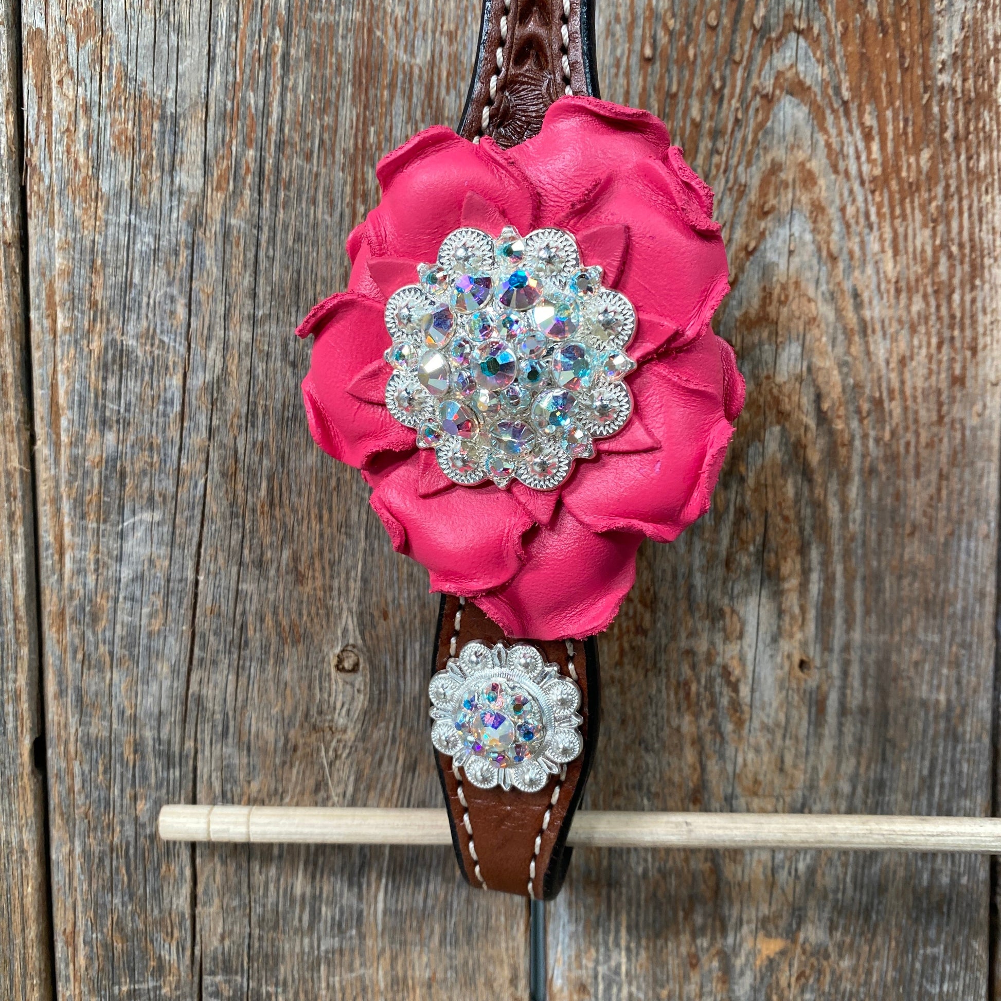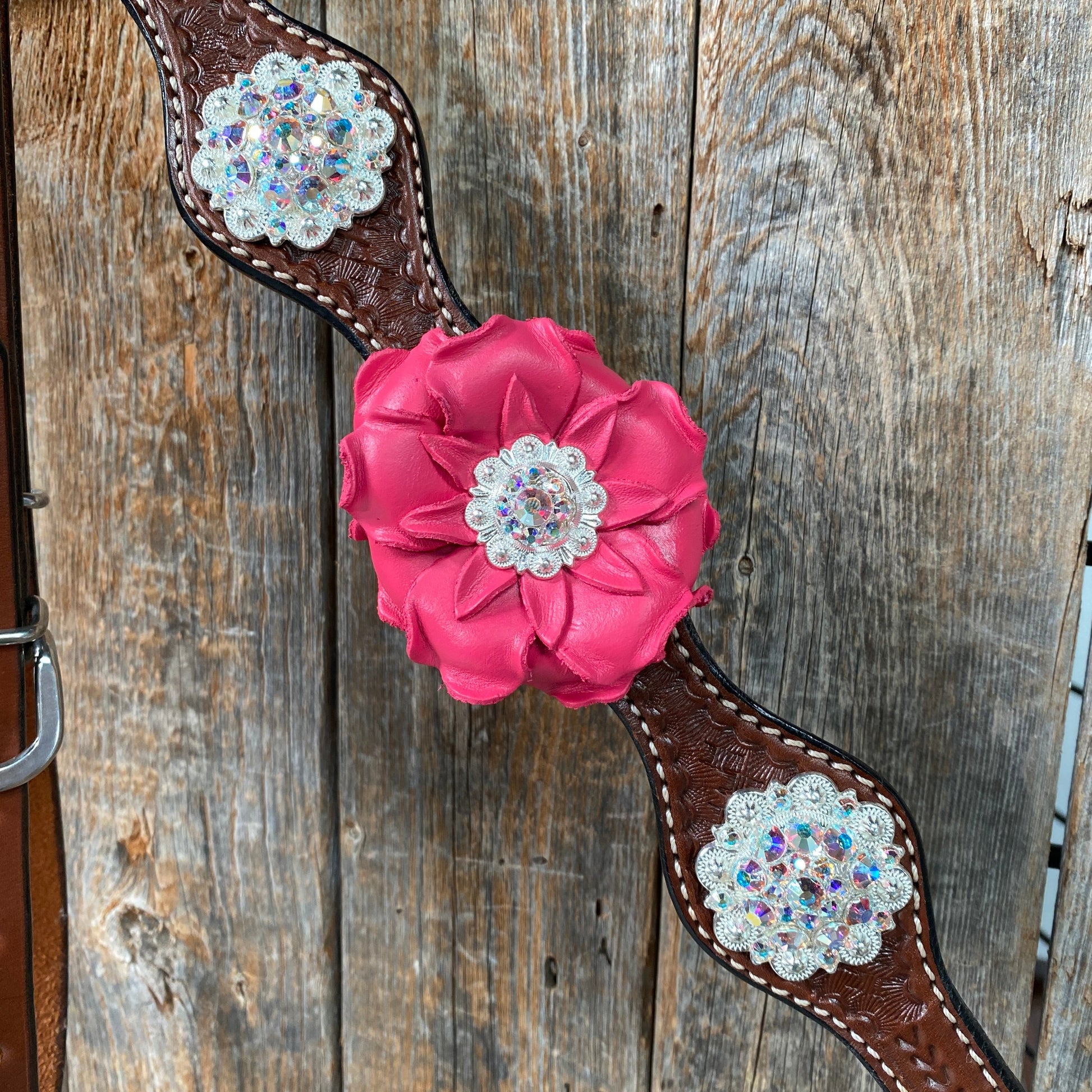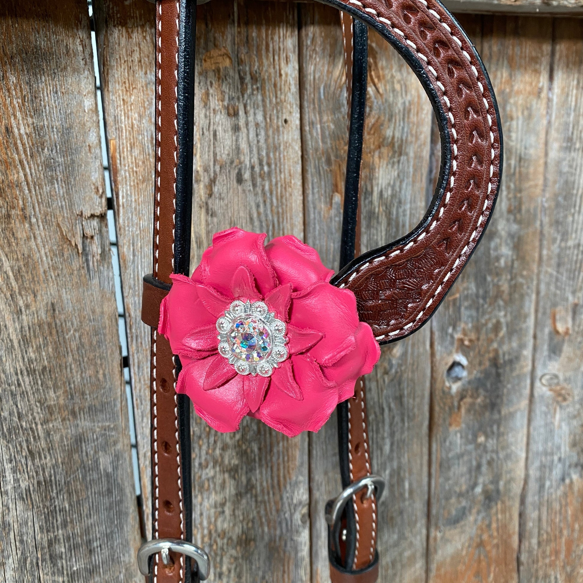 Medium Oil Basketweave Pink & AB One Ear Tack Set #OEBC591
