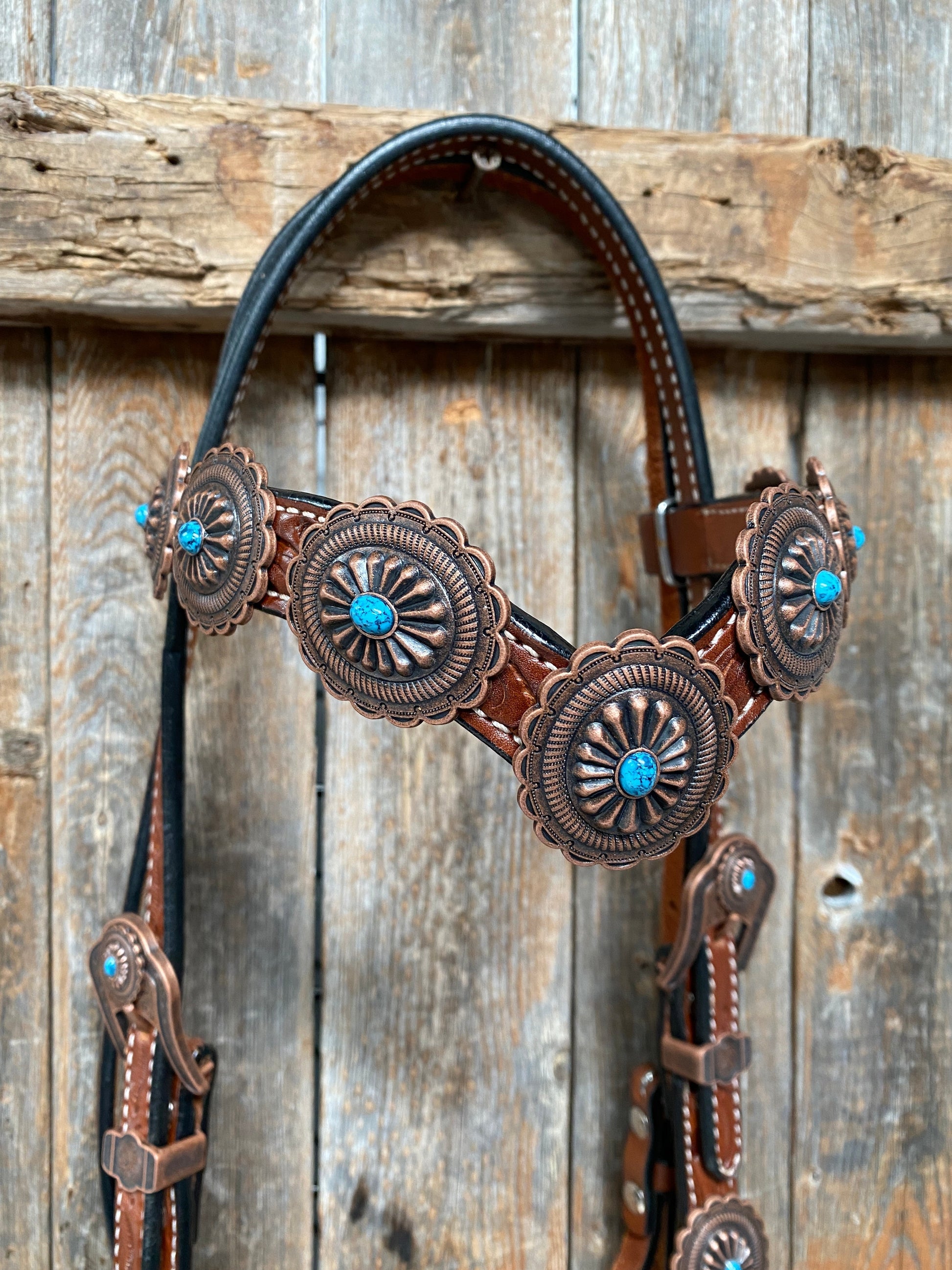 Medium Oil Navajo Style Copper Turquoise Browband & Breastcollar Tack Set #BBBC448