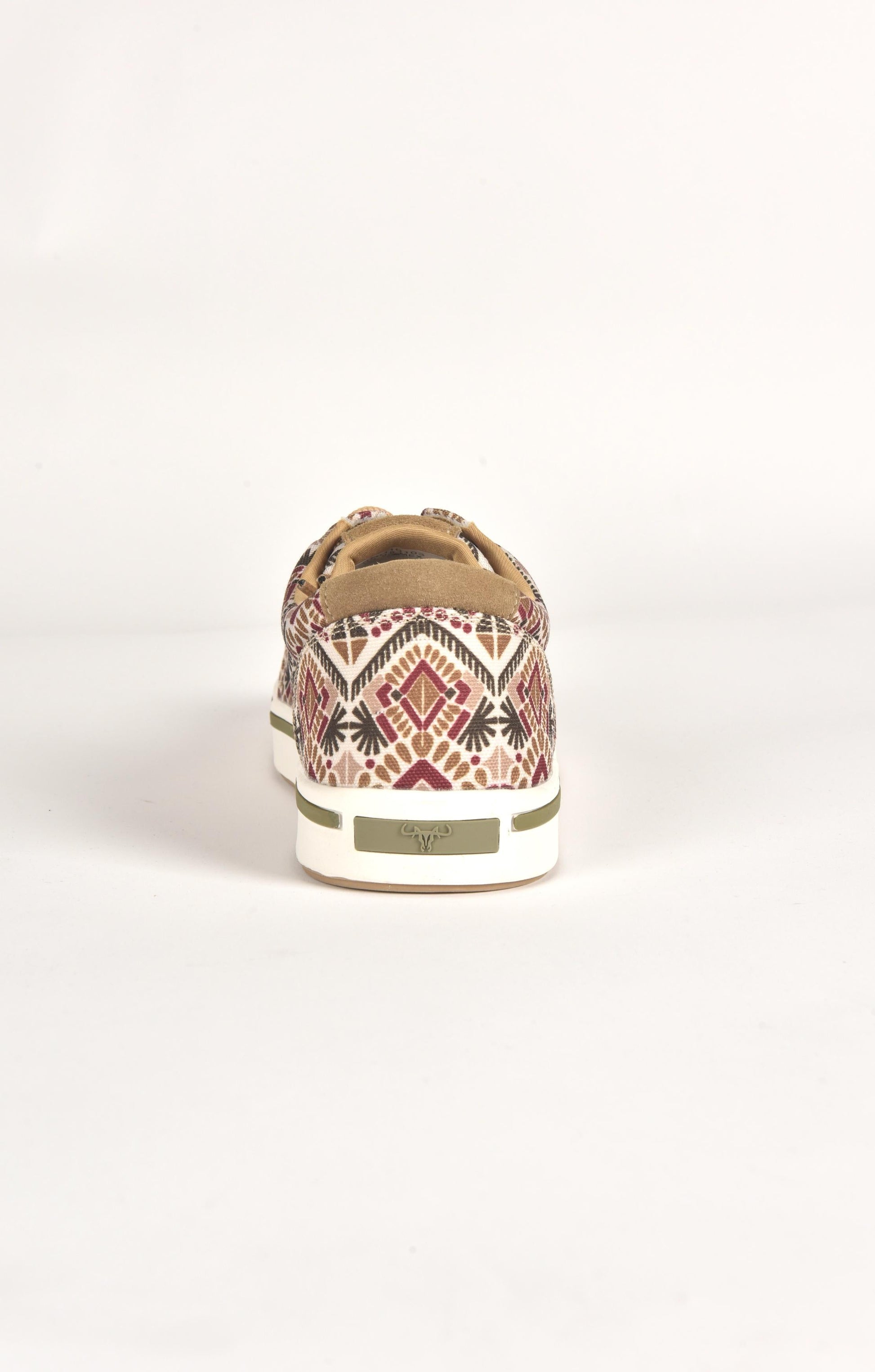 Description: Step out in style with our Men's Aztec Print Canvas Sneaker, a versatile footwear option that combines comfort and fashion. Featuring a vibrant Aztec print on durable canvas material, these sneakers add a pop of color and personality to any outfit. The lace-up closure ensures a secure fit, while the cushioned insole provides all-day comfort. Perfect for casual outings or weekend adventures, these sneakers are a must-have for any wardrobe.