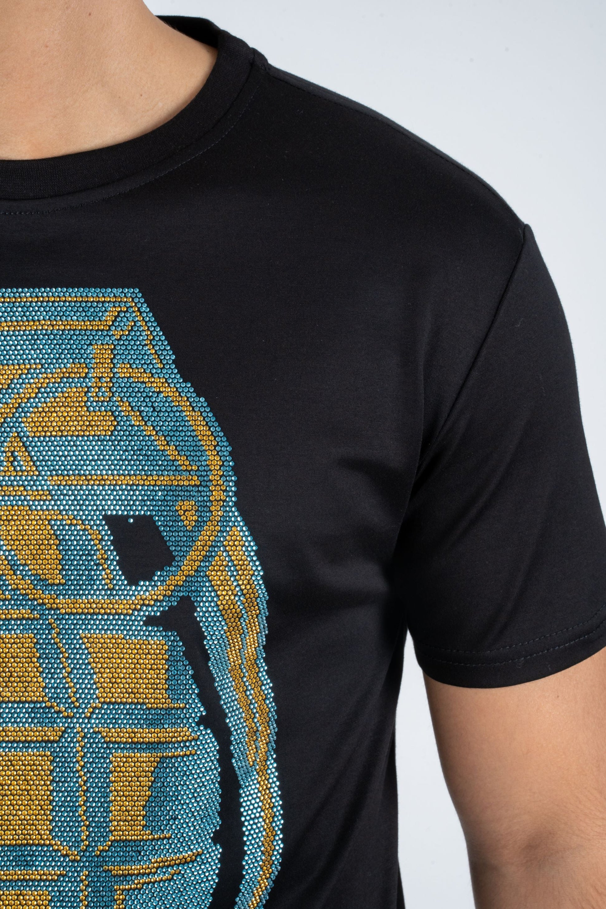 Men's Cotton Black Rhinestone T-shirt