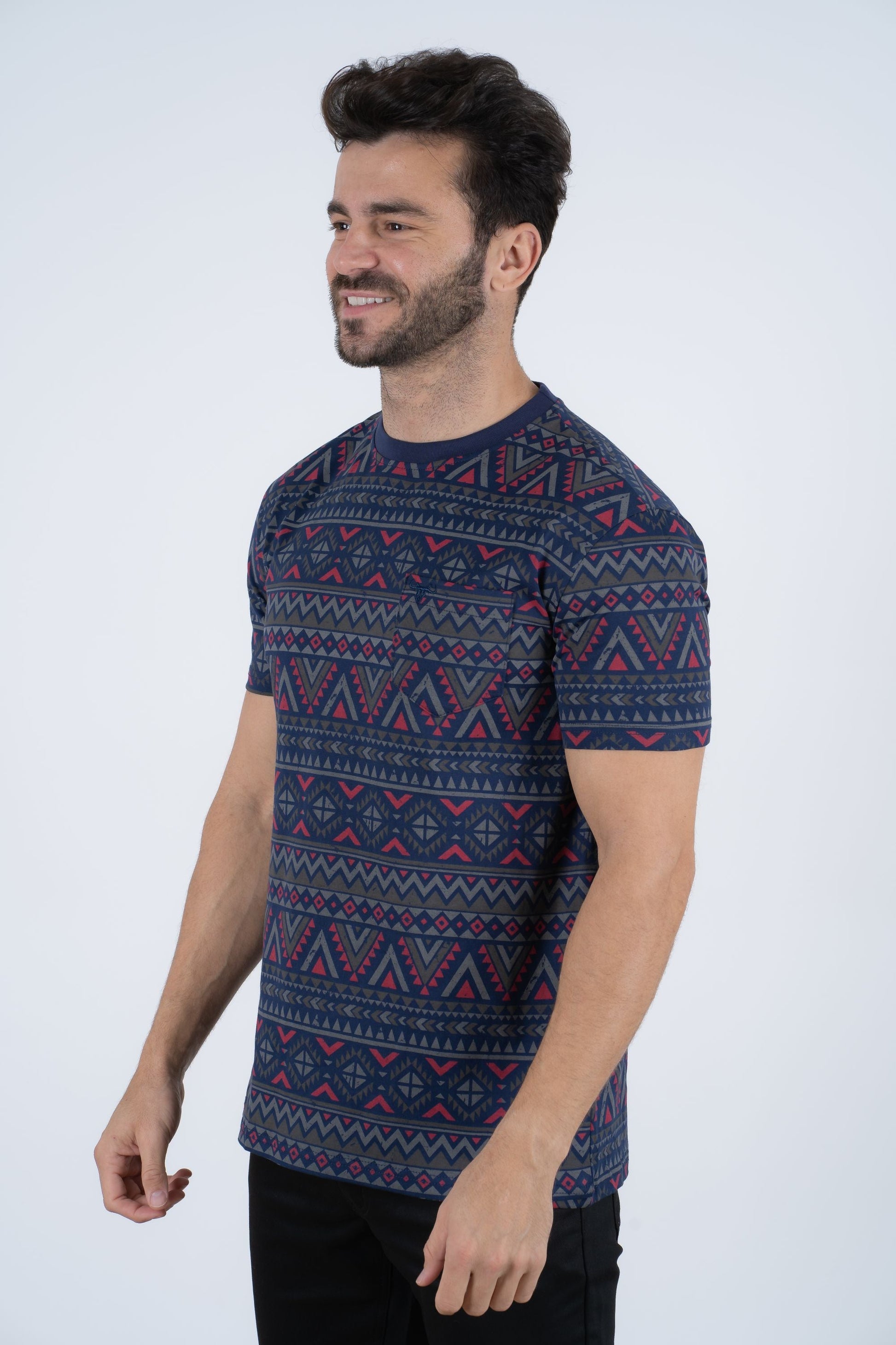 About: Platini's men relaxed-fit T-Shirt designed for a long-lasting wear with breathable cotton, spandex material and a simplistic design with aztec print for a sport or casual look.