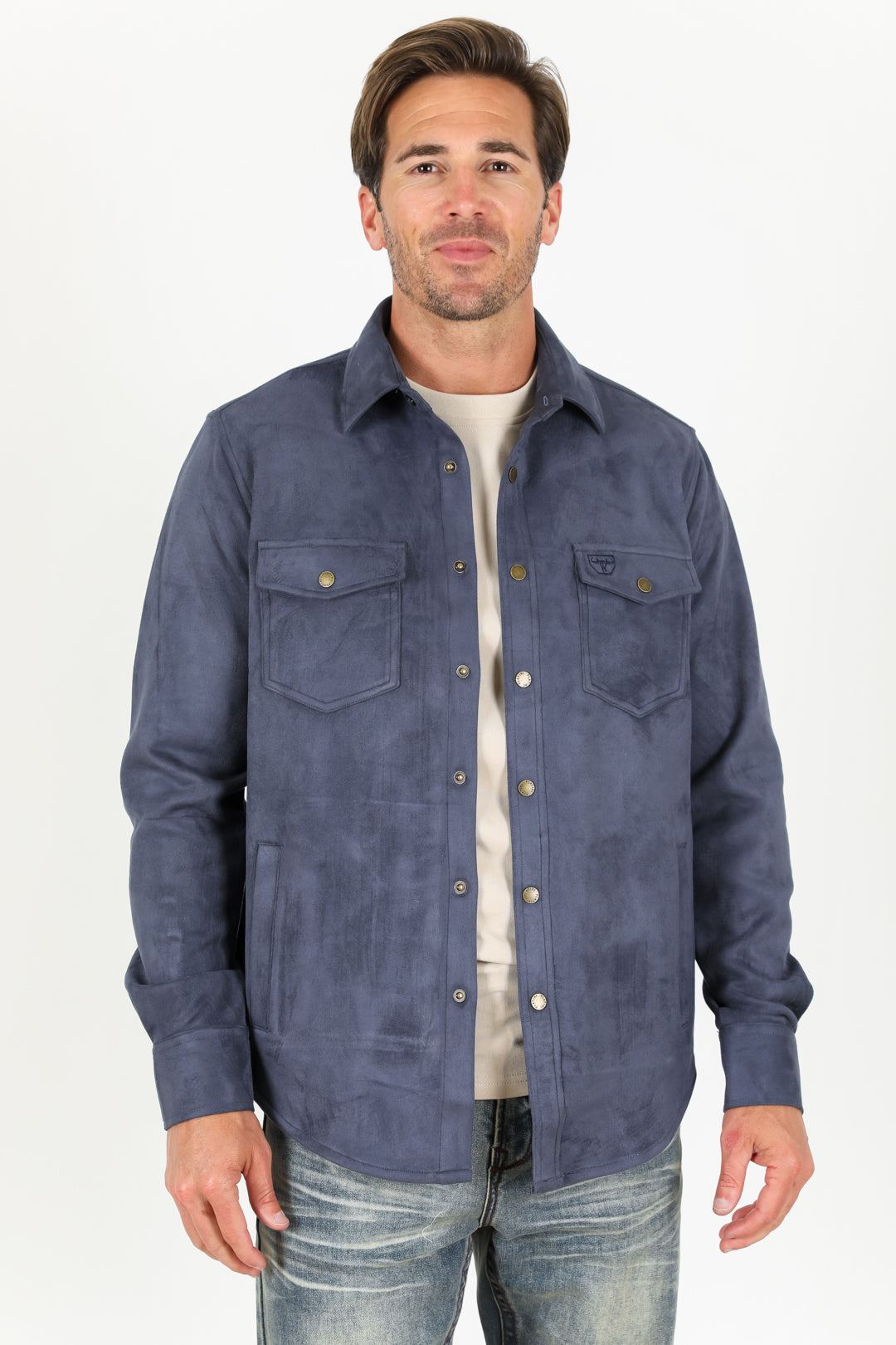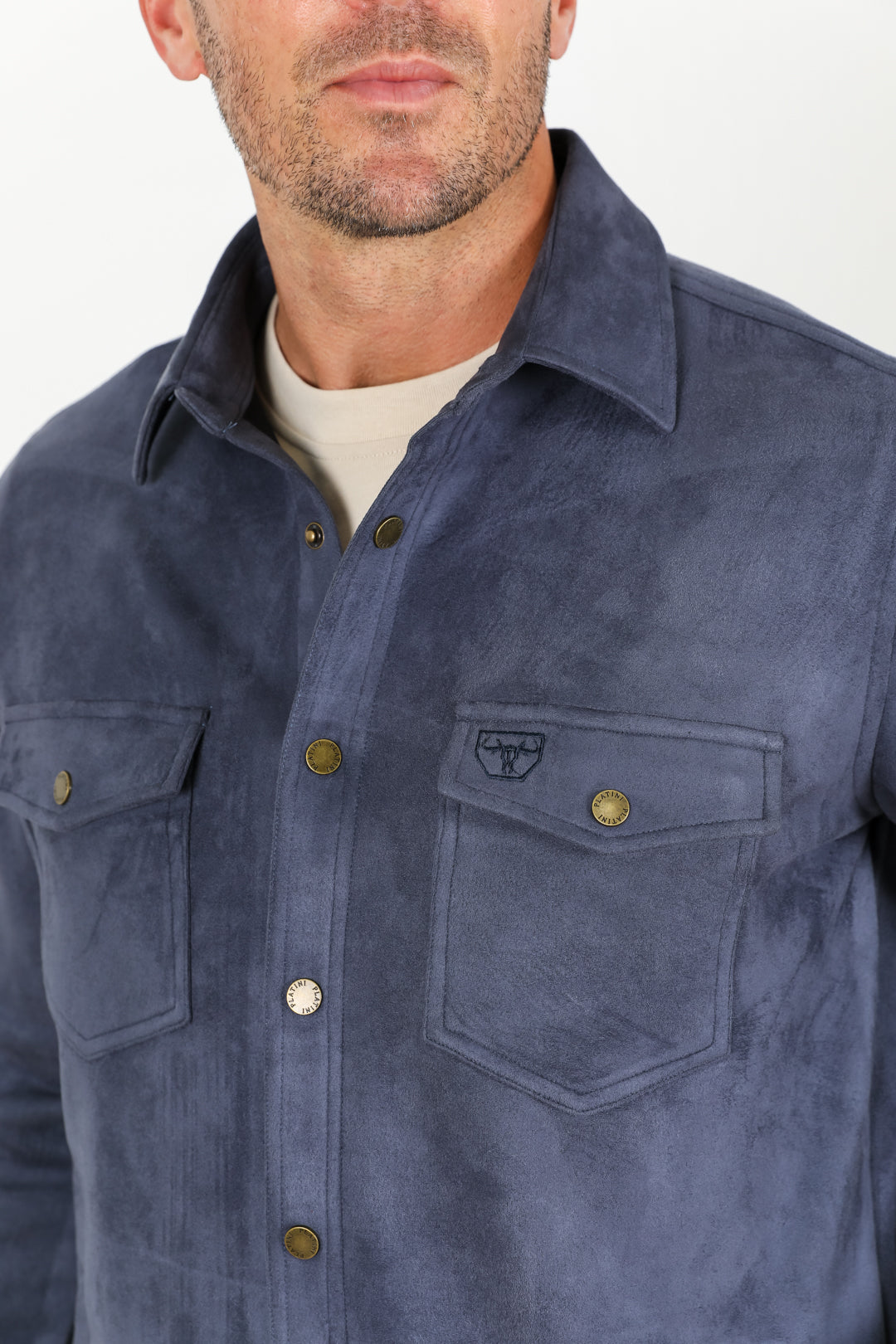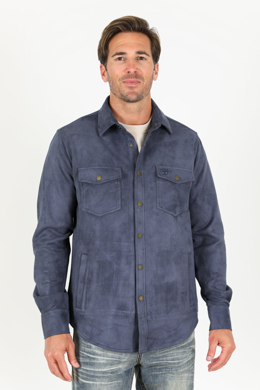 This stylish and versatile overshirt is perfect for any occasion. Made from faux suede, it is soft and comfortable to wear, and the long sleeves and spread collar make it perfect for layering. The overshirt also features chest pockets with button closure, side pockets, and a snap fastening closure. A western detail in the back and a logo embroidered in the right chest pocket add a touch of personality.