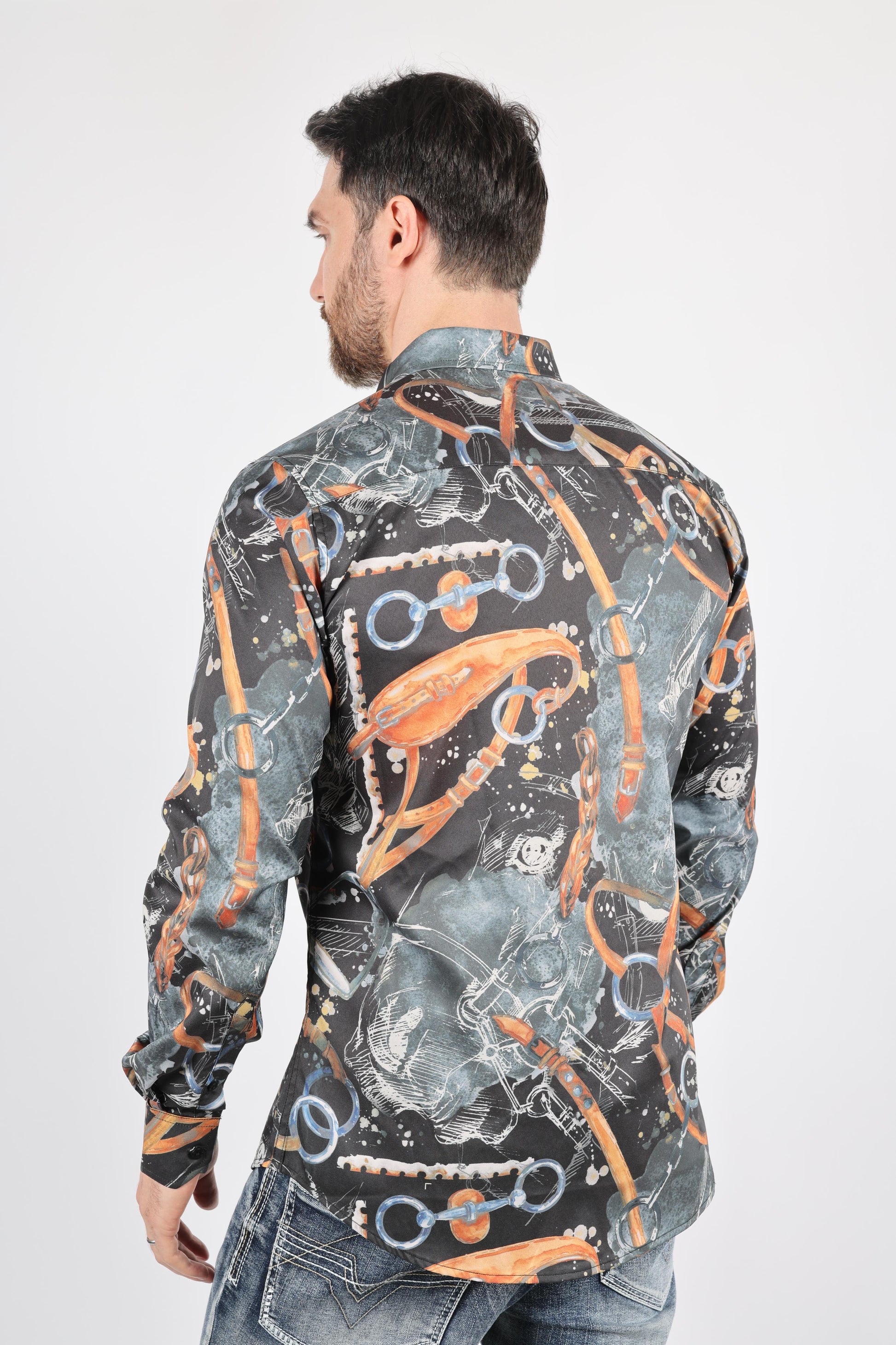 Description: Elevate your wardrobe with our Men's Long Sleeve Modern Fit Stretch Wild Horses Print Shirt, perfect for adding a touch of personality to any outfit. Crafted from stretch cotton material, this shirt offers a comfortable fit and freedom of movement. The captivating wild horses print adds a distinctive flair, making it suitable for various occasions, from casual outings to semi-formal events.