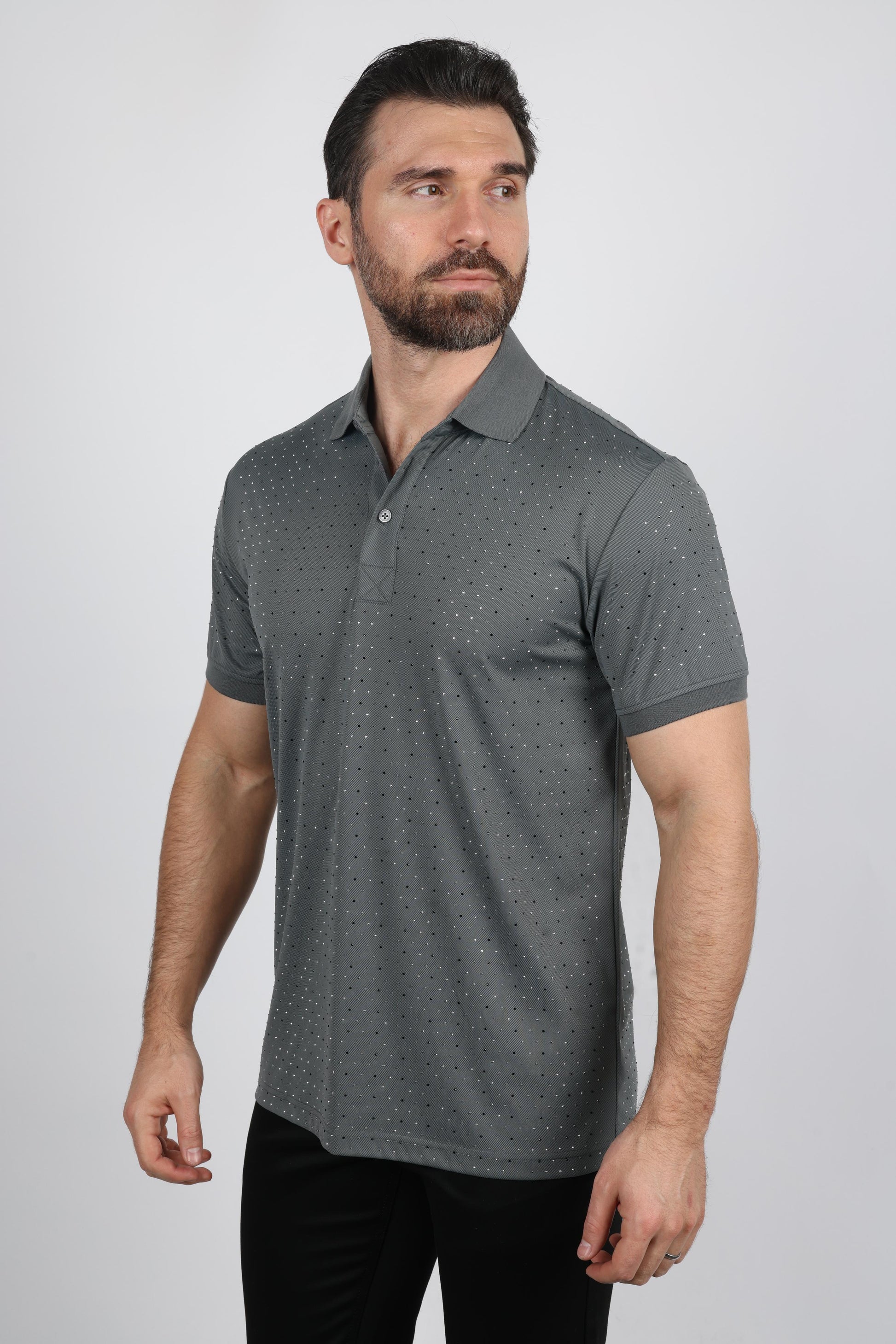 Mens Modern Fit Stretch Full Body Crystals Polo