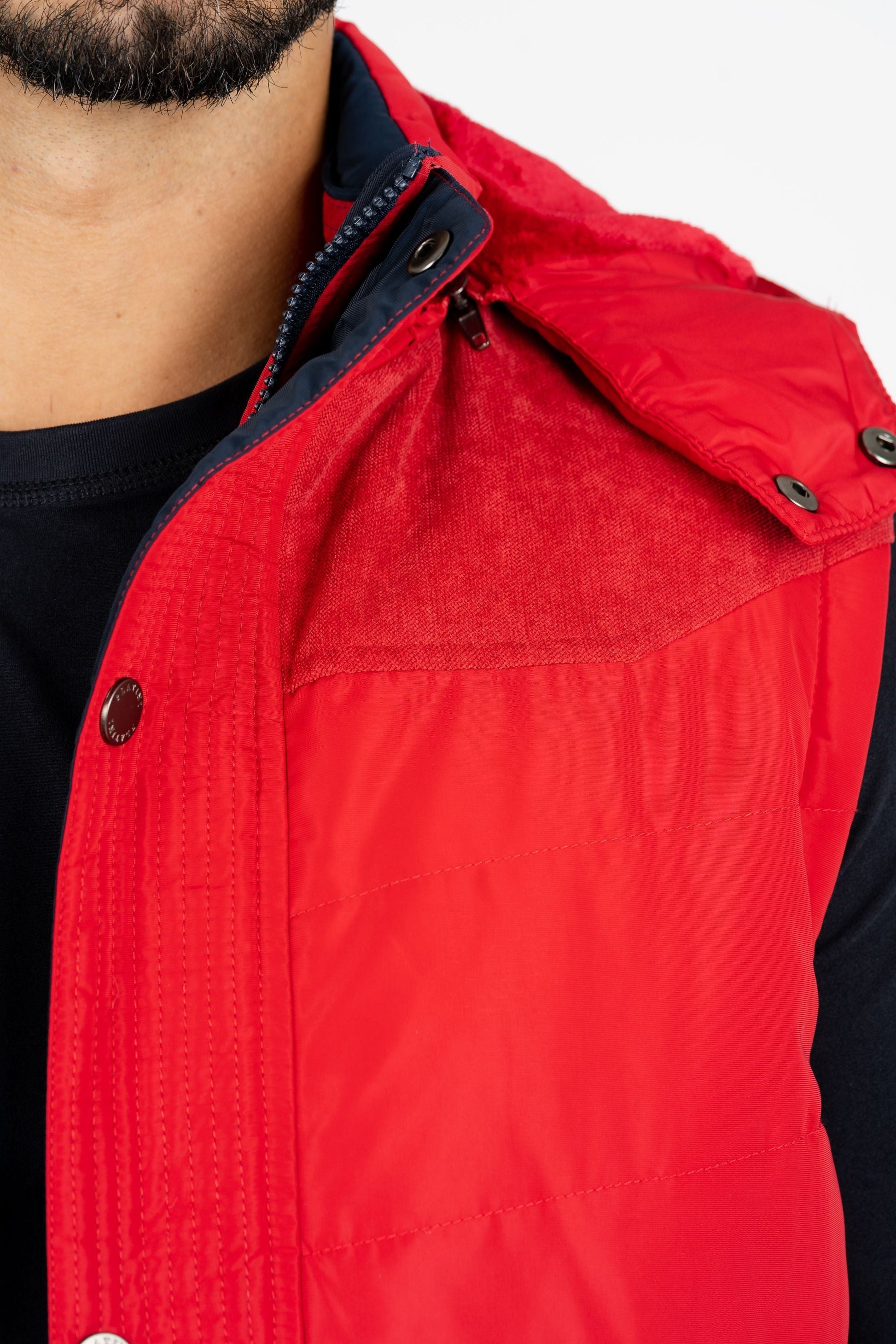Men's Red Padded Hooded Vest w/ Faux Fur Lining