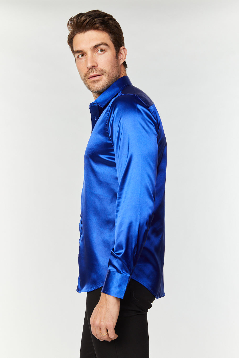 About: This solid-colored satin dress shirt from Platini Jeans will enhance your fashionable wardrobe. The head-turning color adds flair to the classic long sleeve shirt. A relaxed fit delivers sleek style, and the point collar provides a modern finishing touch.