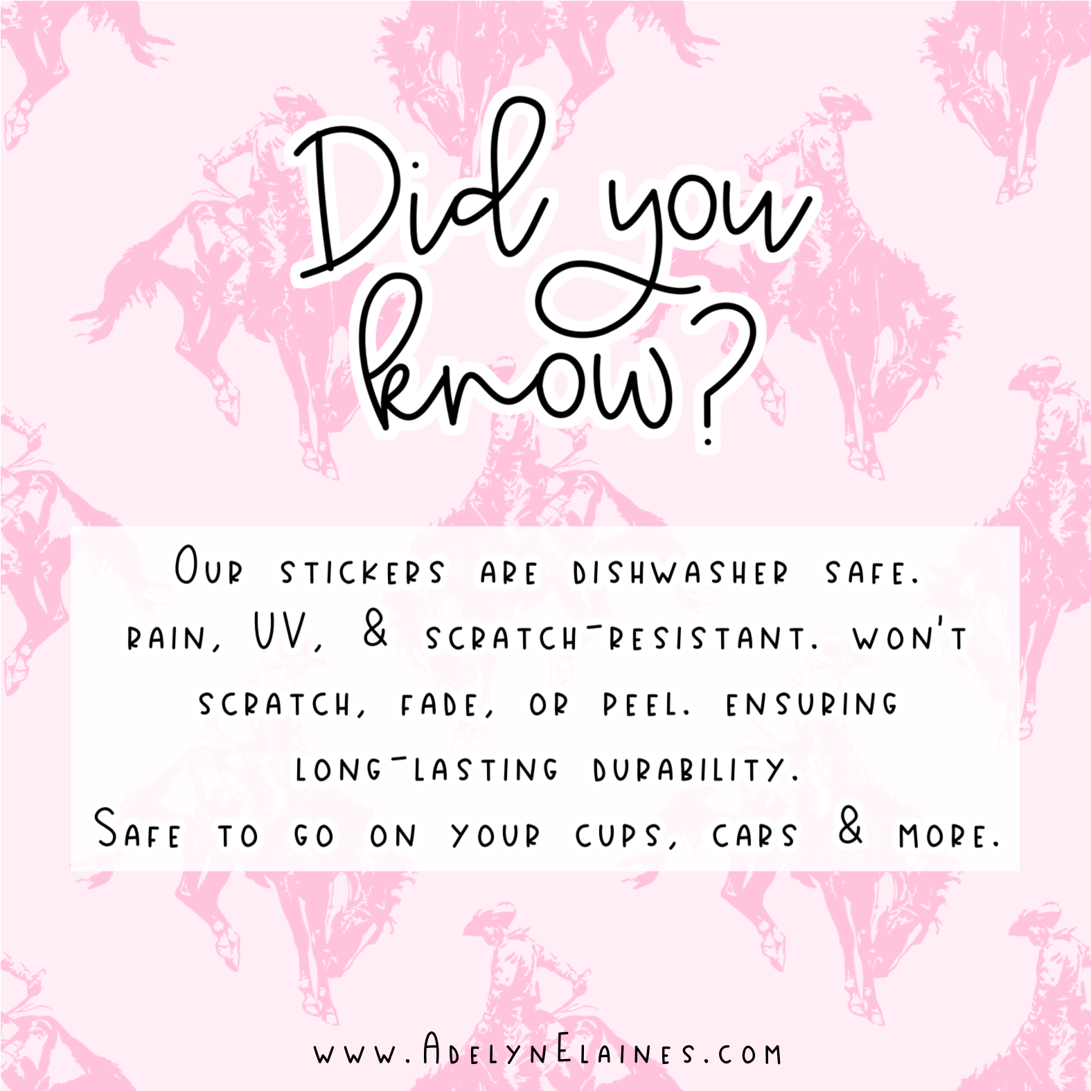 Stick them on your laptop, note books, planners, ice chests, cups, mugs, hydros, cars, water bottles, phone cases and more. Possibilities are endless!
