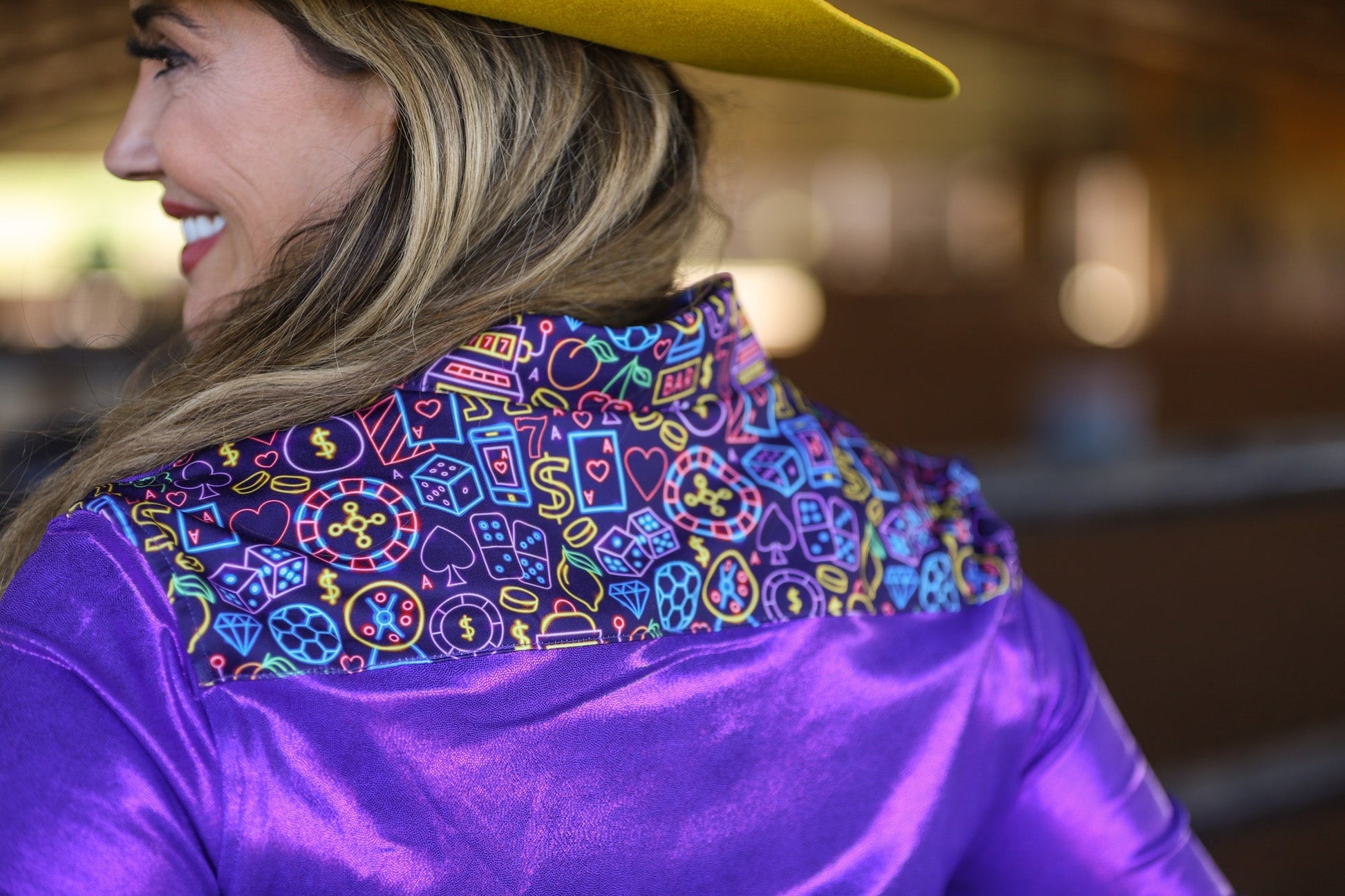 NEON LIGHTS & PURPLE SPARKLE PERFORMANCE RODEO SHIRT