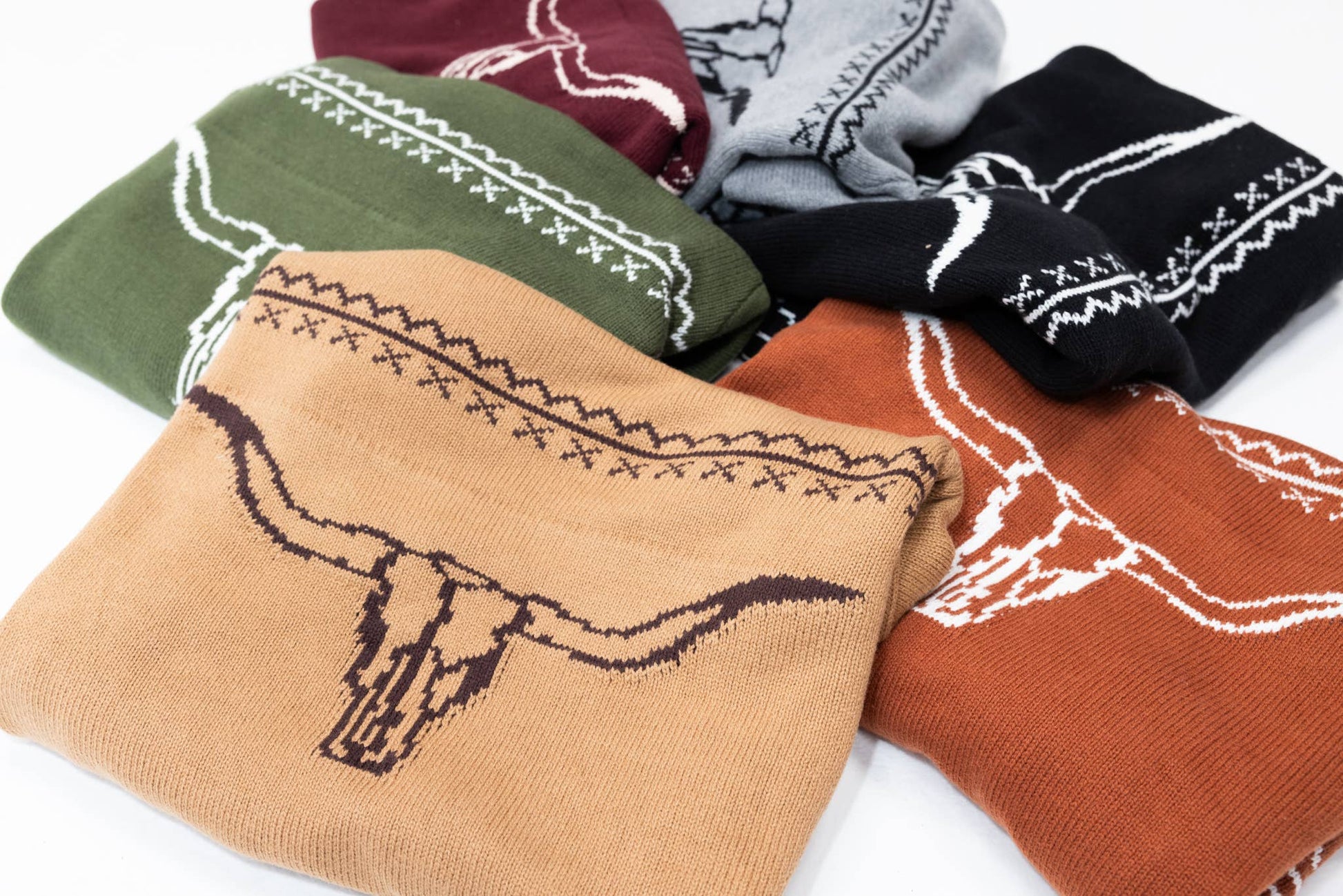 Our OG Longhorn sweater has been a staple for us since our inception. Available in a variety of colors and there is no doubt you won't find a home for one in your wardrobe. Dress it up with a collared shirt or keep it casual.