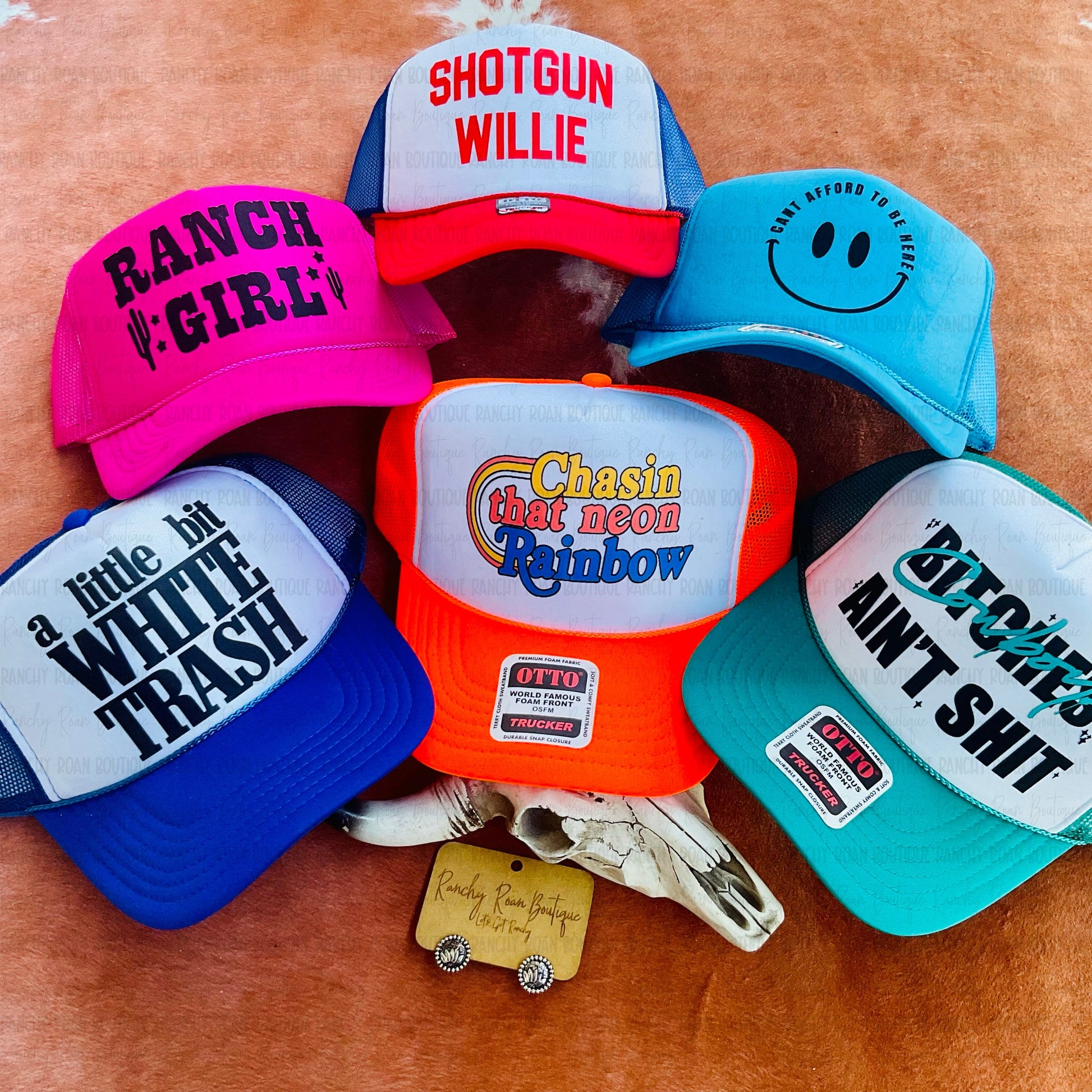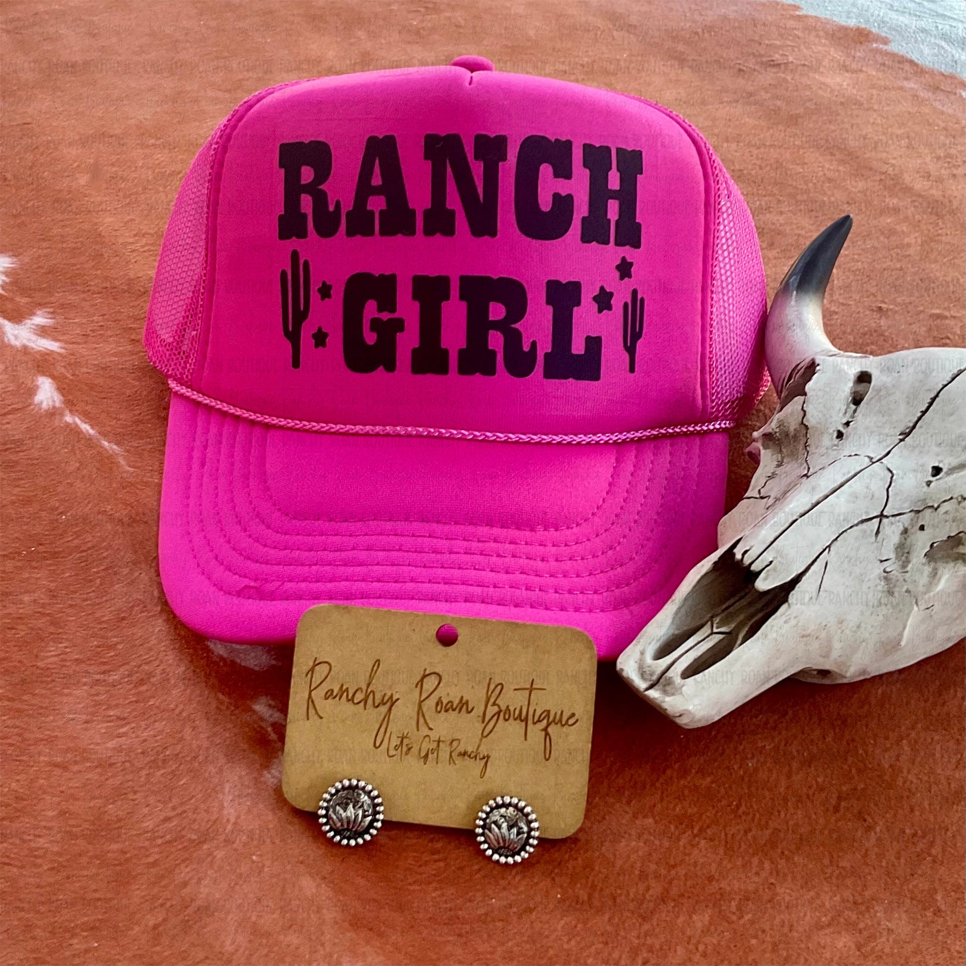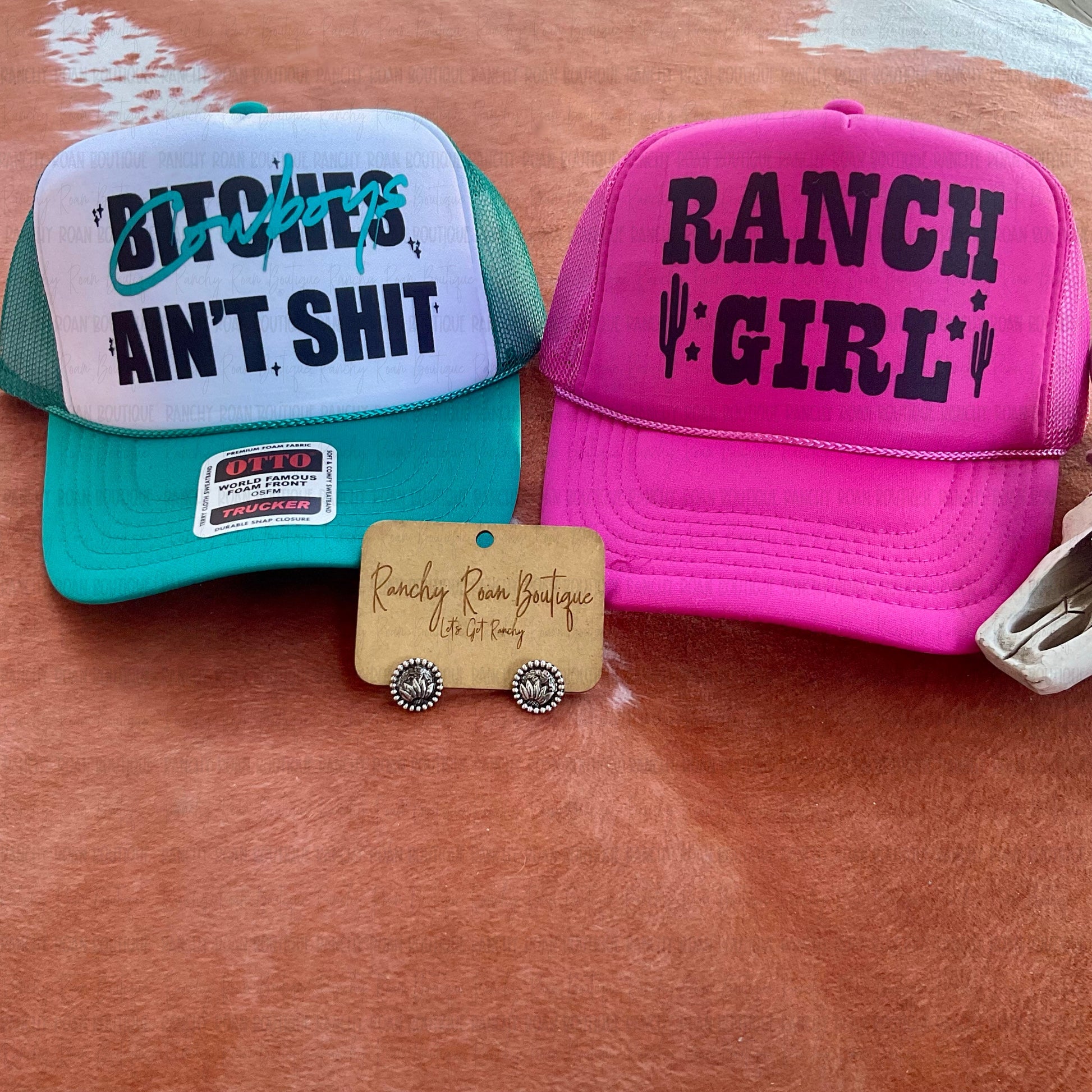 The Ranch Girl Trucker Hat is a must-have for every cowgirl who loves bold Western style. Designed with classic ranch life vibes, this foam trucker hat features a breathable mesh back, a comfortable fit, and a bold “Ranch Girl” graphic with Western cactus details. Perfect for rodeos, casual ranch days, or adding a touch of Western flair to any outfit.