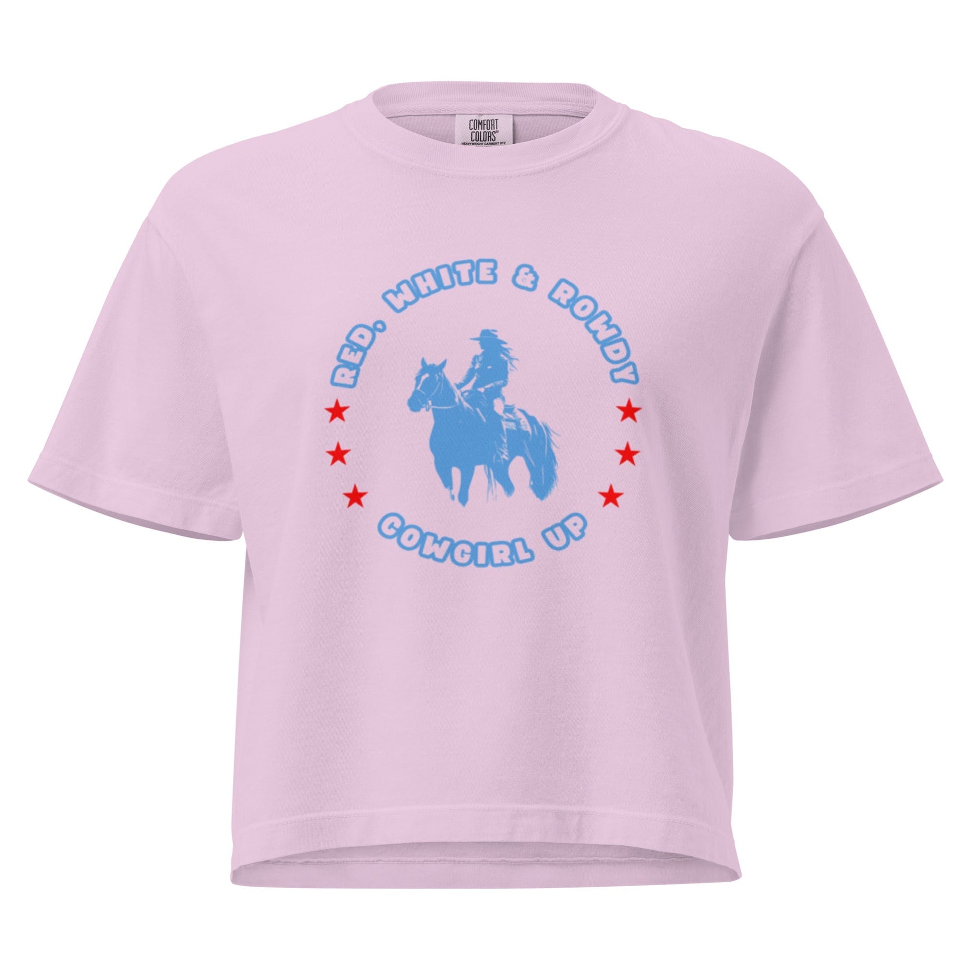 Get ready to two-step in style with the Red White Rowdy Mid Length Box Tee! This playful summer top features a box cut perfect for dancing at rodeos or casual days out. Its cute, comfortable fit keeps you cool while showing off your fun-loving spirit. Whether you're hitting the dance floor or just enjoying sunny days, this tee brings a splash of rowdy charm to your wardrobe.