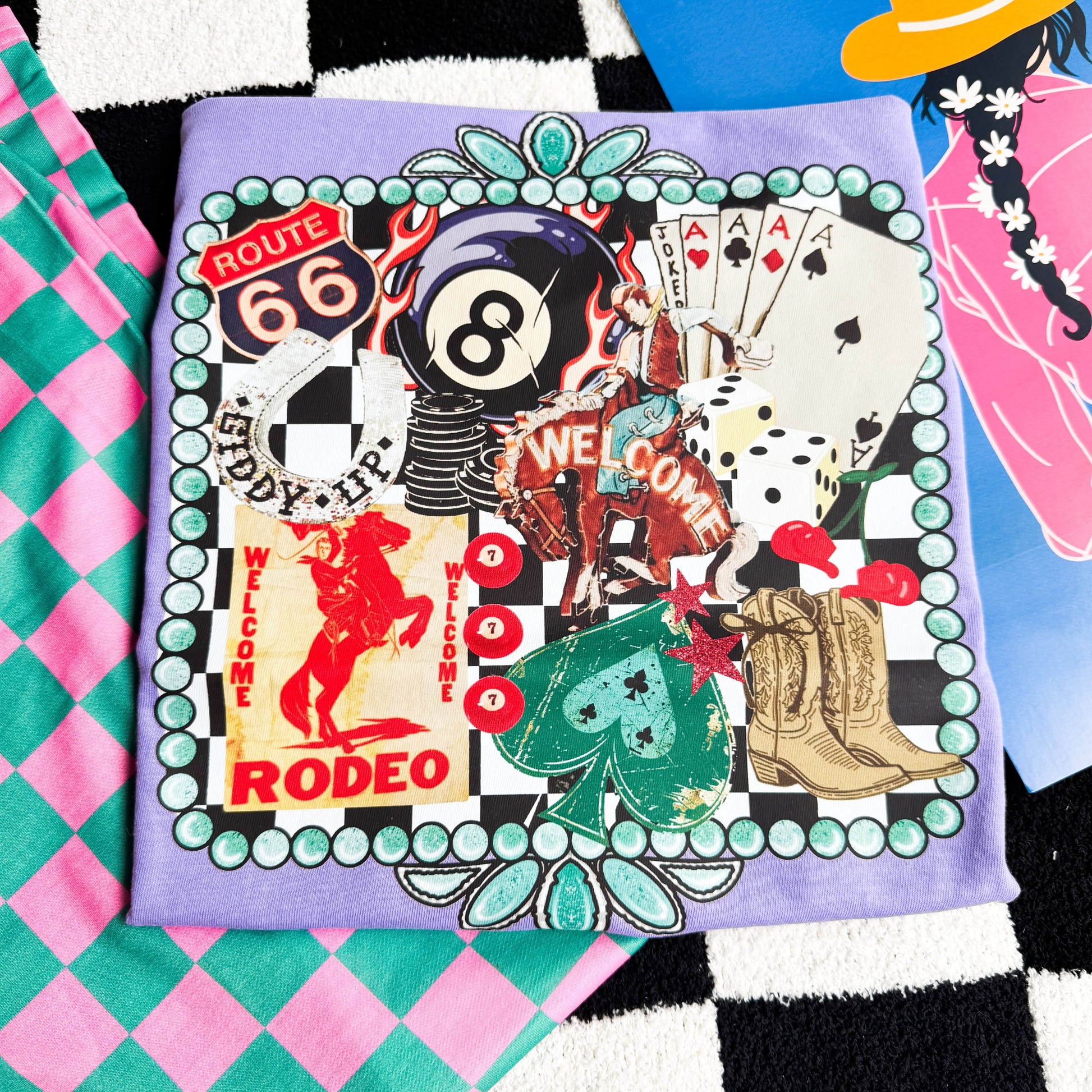 Saddle up for style with our Rodeo 8 Ball Turquoise Graphic Tee! This eye-catching shirt features a vibrant turquoise design that blends rodeo spirit with pool hall cool. Perfect for casual outings or making a statement at your next country-western event. The playful 8 ball motif adds a touch of luck to your Western wardrobe – because sometimes you need to break and scatter the competition!