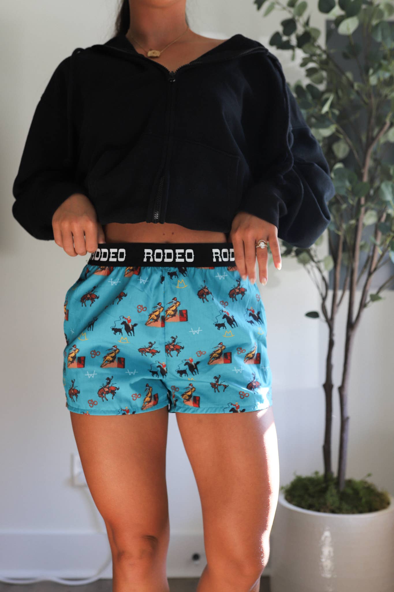 Our turquoise "vintage cowboy" rodeo boxers are the must-have item this year! They're trendy, cute, comfy and pair perfectly with your favorite graphic tee or oversized sweatshirt. They're the only one of their kind on the market so stock up and show your customers that they can't live without them by styling them all the fun ways this season!!
