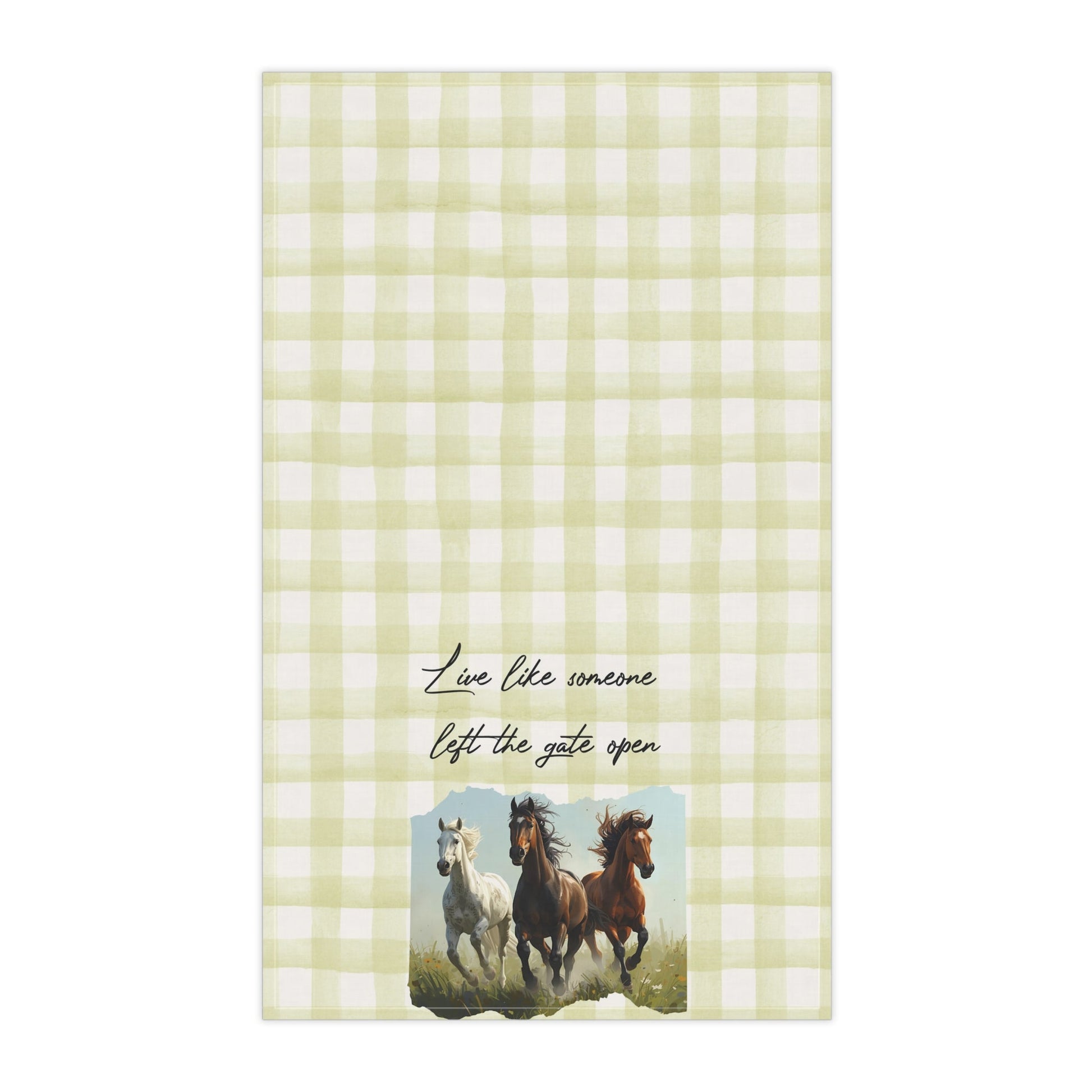 Elevate your kitchen decor with these charming tea towels. Featuring a delightful horse motif against a soft gingham background, they bring a touch of rustic elegance to any home. Perfect for drying dishes or adding a decorative flair, these towels evoke a warm and inviting atmosphere. Ideal for horse lovers, country home enthusiasts, or anyone who appreciates cozy farmhouse aesthetics. These tea towels make for a thoughtful gift during holidays, housewarmings, or even as a special surprise for any equestrian celebration.