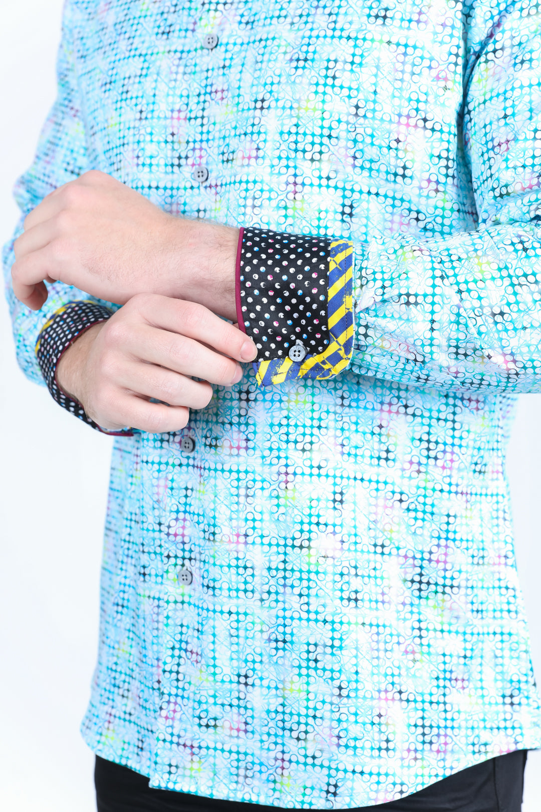 Description: Elevate your wardrobe with our Satin Cotton/Spandex Long Sleeve Shirt – a blend of sophistication and style. These shirts feature captivating prints, and when you roll up the sleeves, a solid color detail adds a touch of flair.
