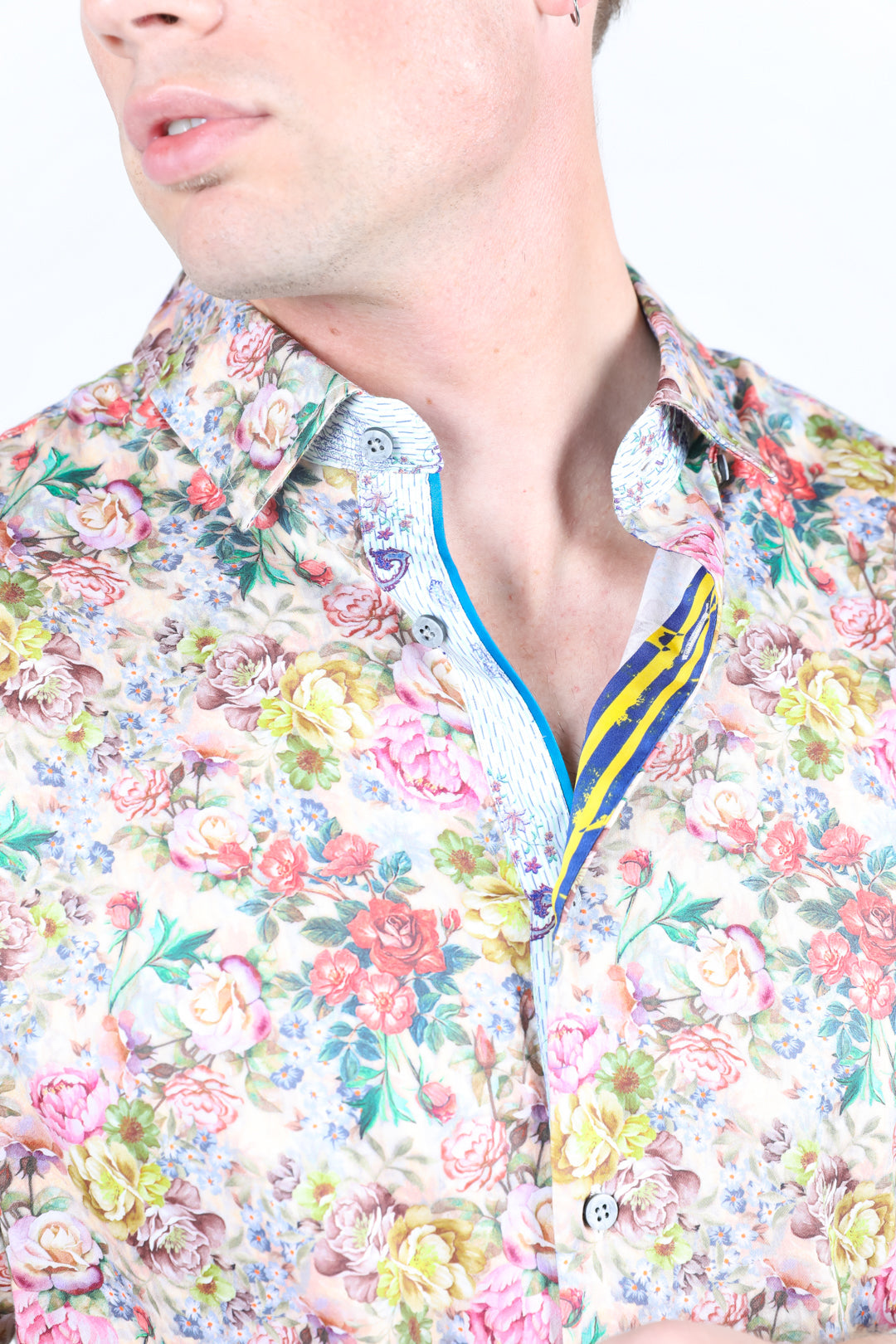 Description: Elevate your wardrobe with our Satin Cotton/Spandex Long Sleeve Shirt – a blend of sophistication and style. These shirts feature captivating prints, and when you roll up the sleeves, a solid color detail adds a touch of flair.
