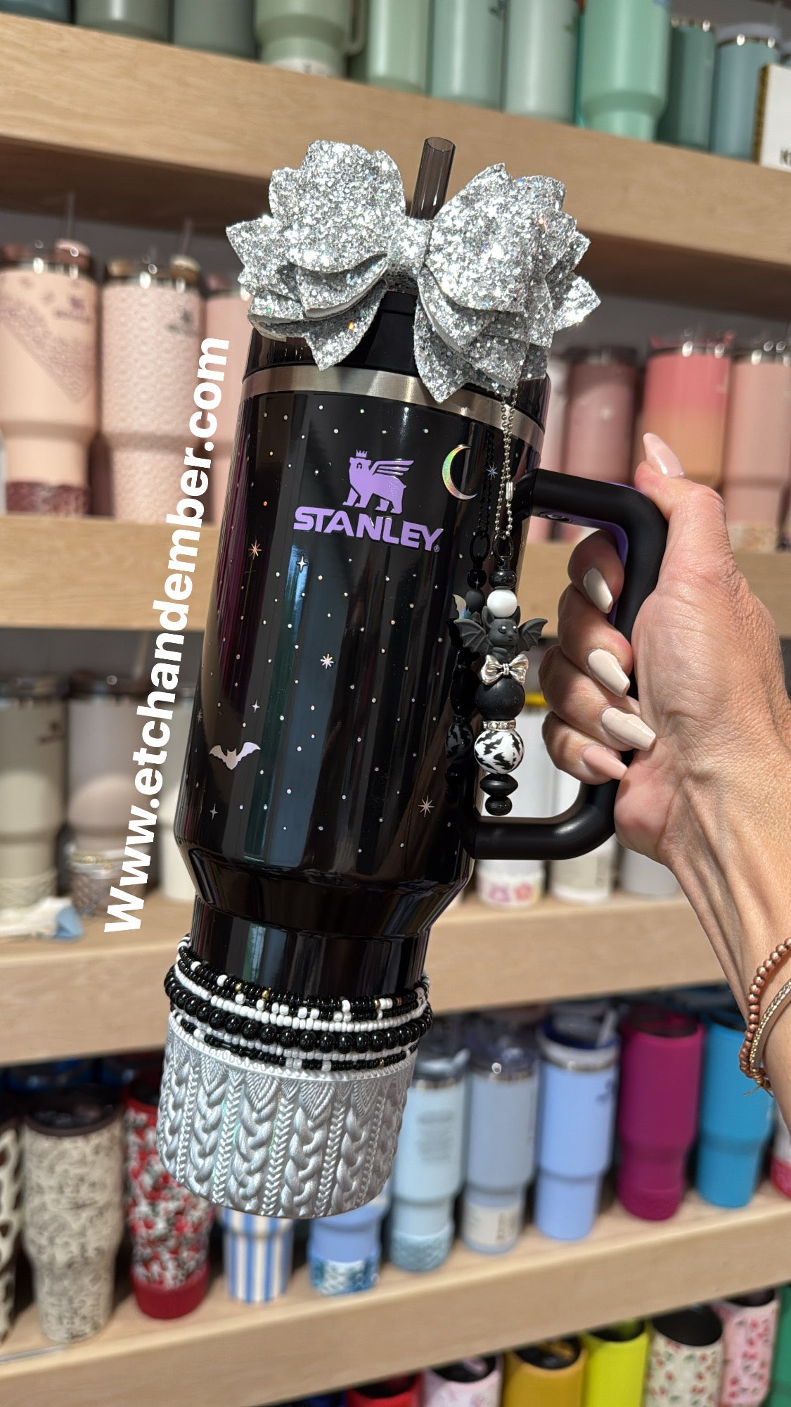 SILVER Glitter Tumbler Bow
