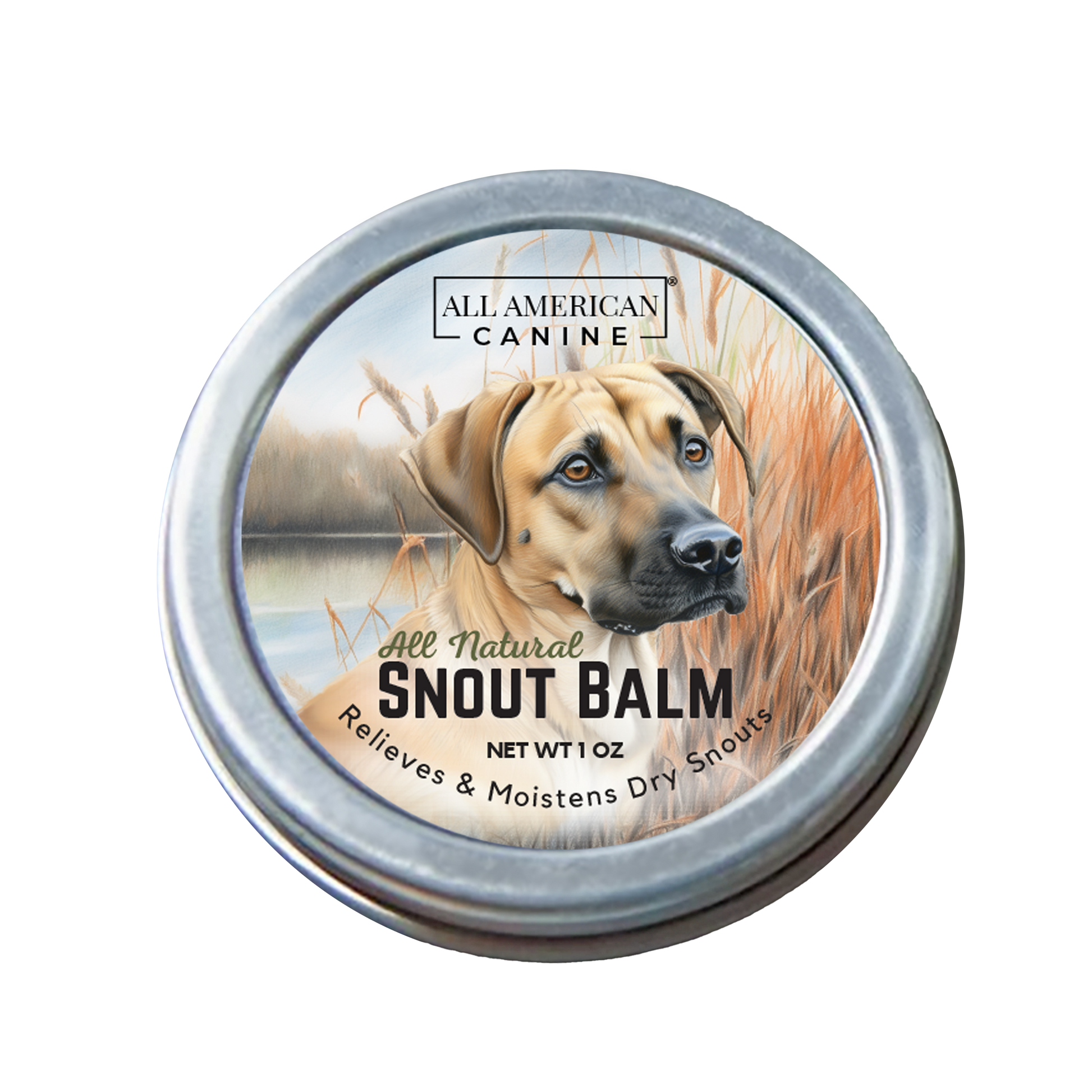 All American Canine's "Snout Balm," a carefully crafted product designed to provide essential care for your dog’s snout. This balm is made with a selection of natural ingredients, specifically chosen for their ability to moisturize, soothe, and protect your dog's snout, especially beneficial for active and outdoor dogs.