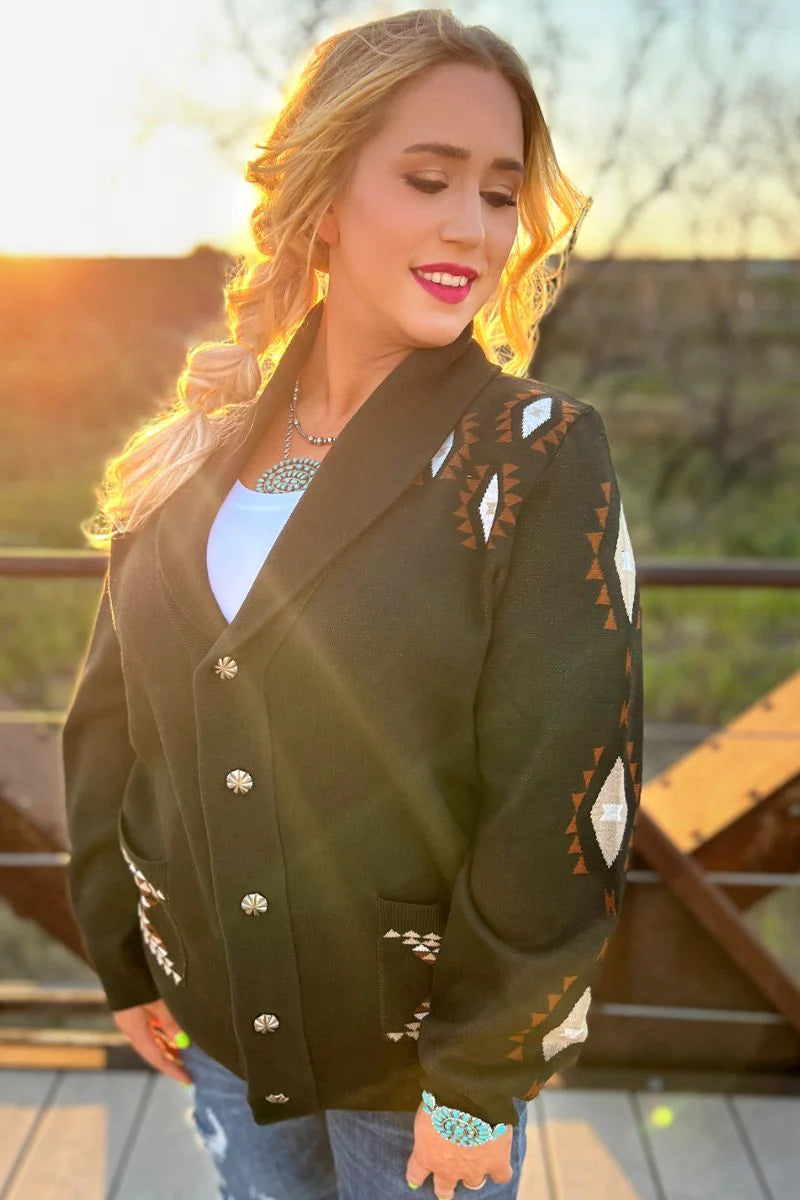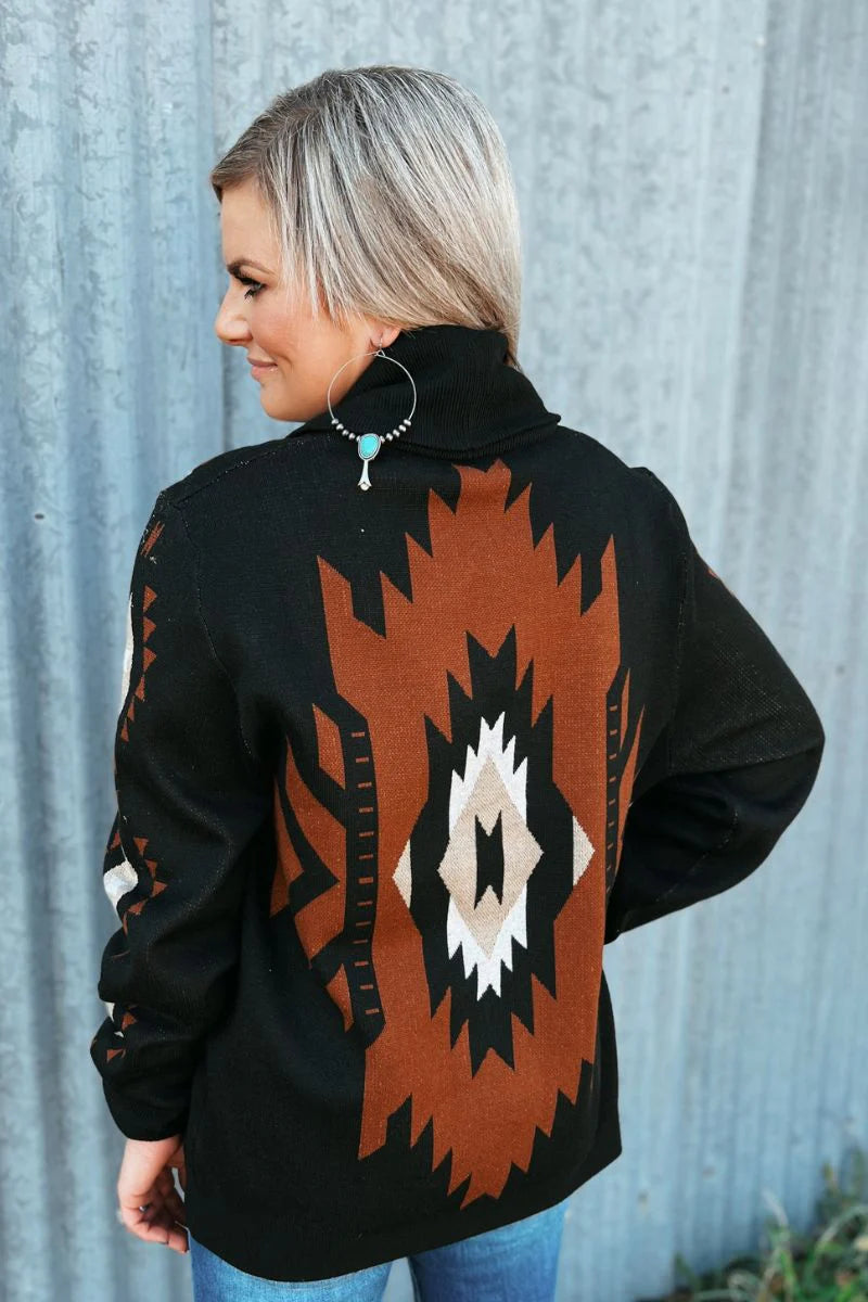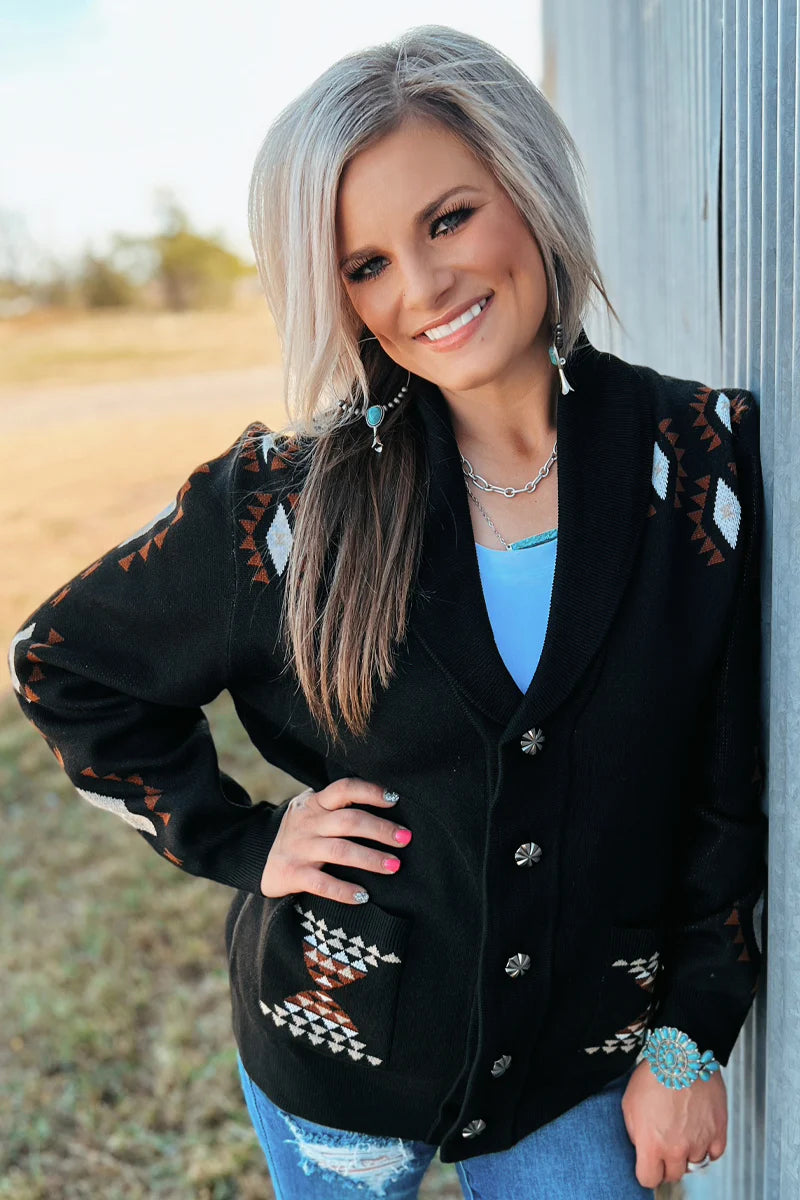 Stay warm and conquer the cold with our playful Stand By Me Knit Sweater. This button-up sweater is a statement piece with a unique print on the back and sides. Add some quirkiness to your wardrobe while staying cozy!