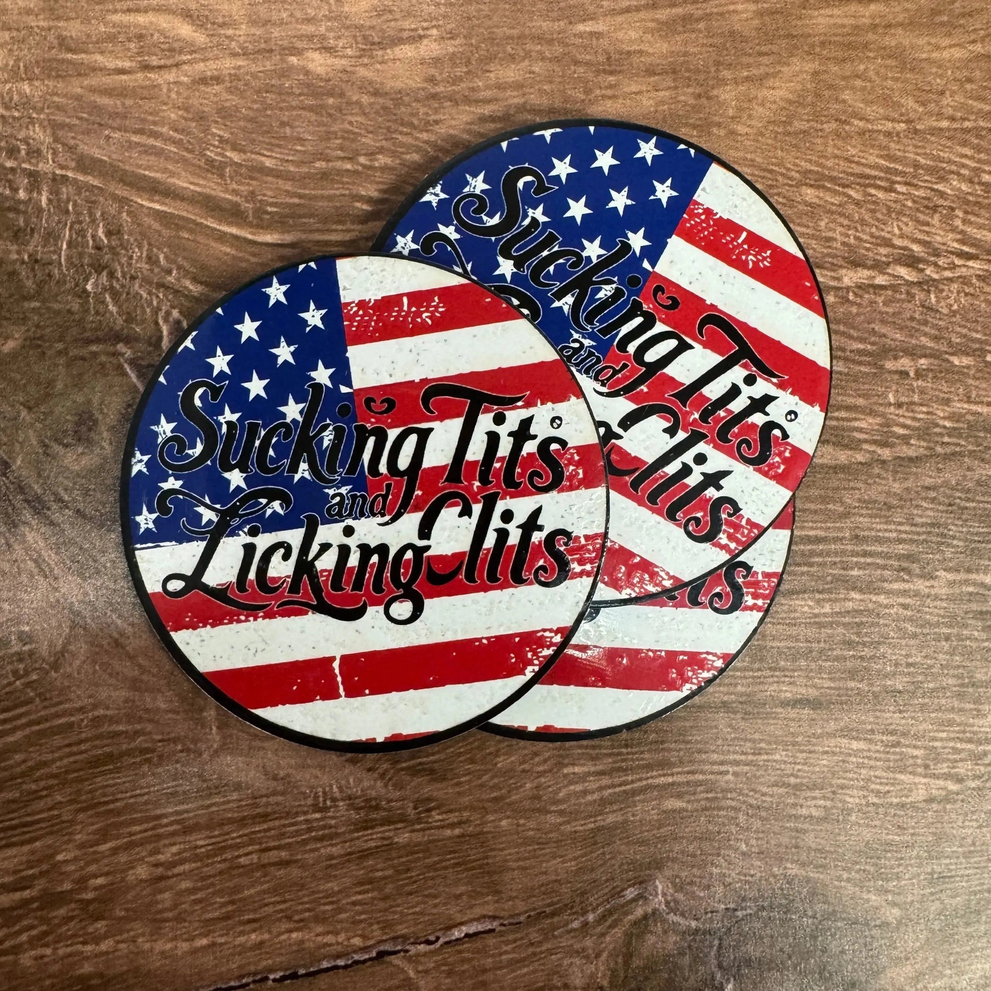 Sucking T's and Licking C's β American Flag Version | UV Printed Leather Hat Patch
