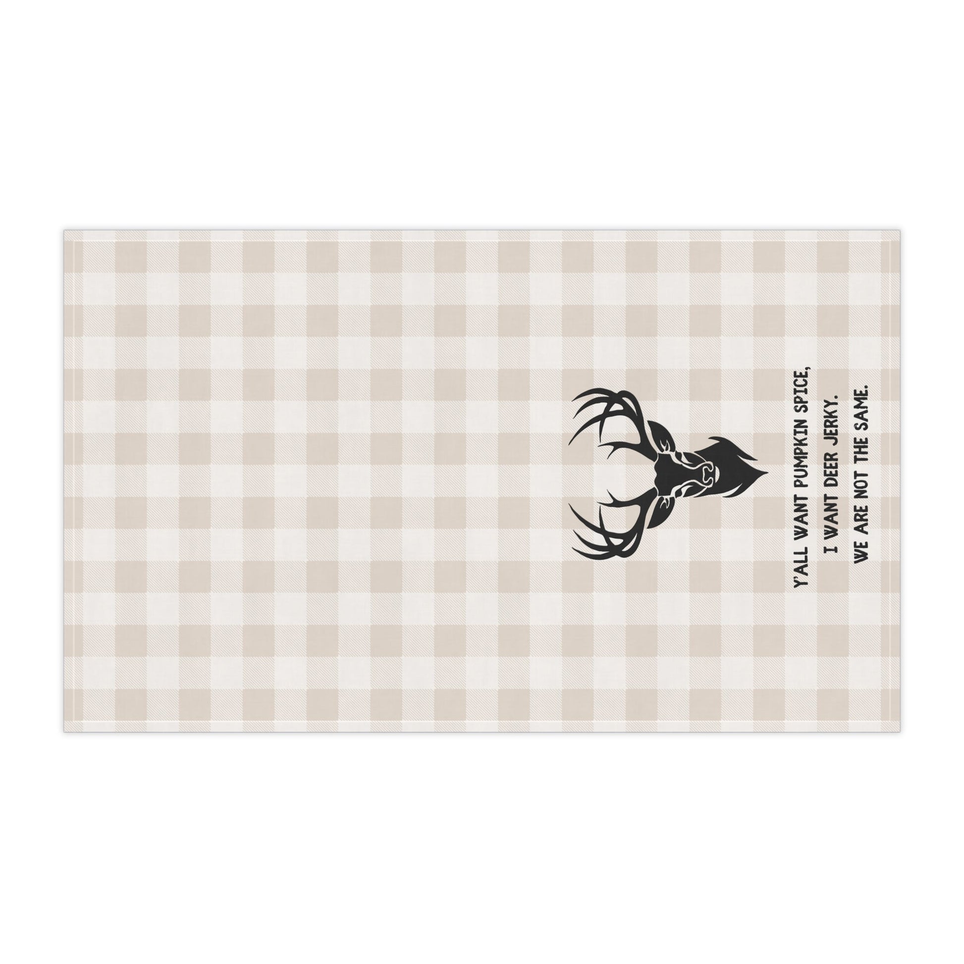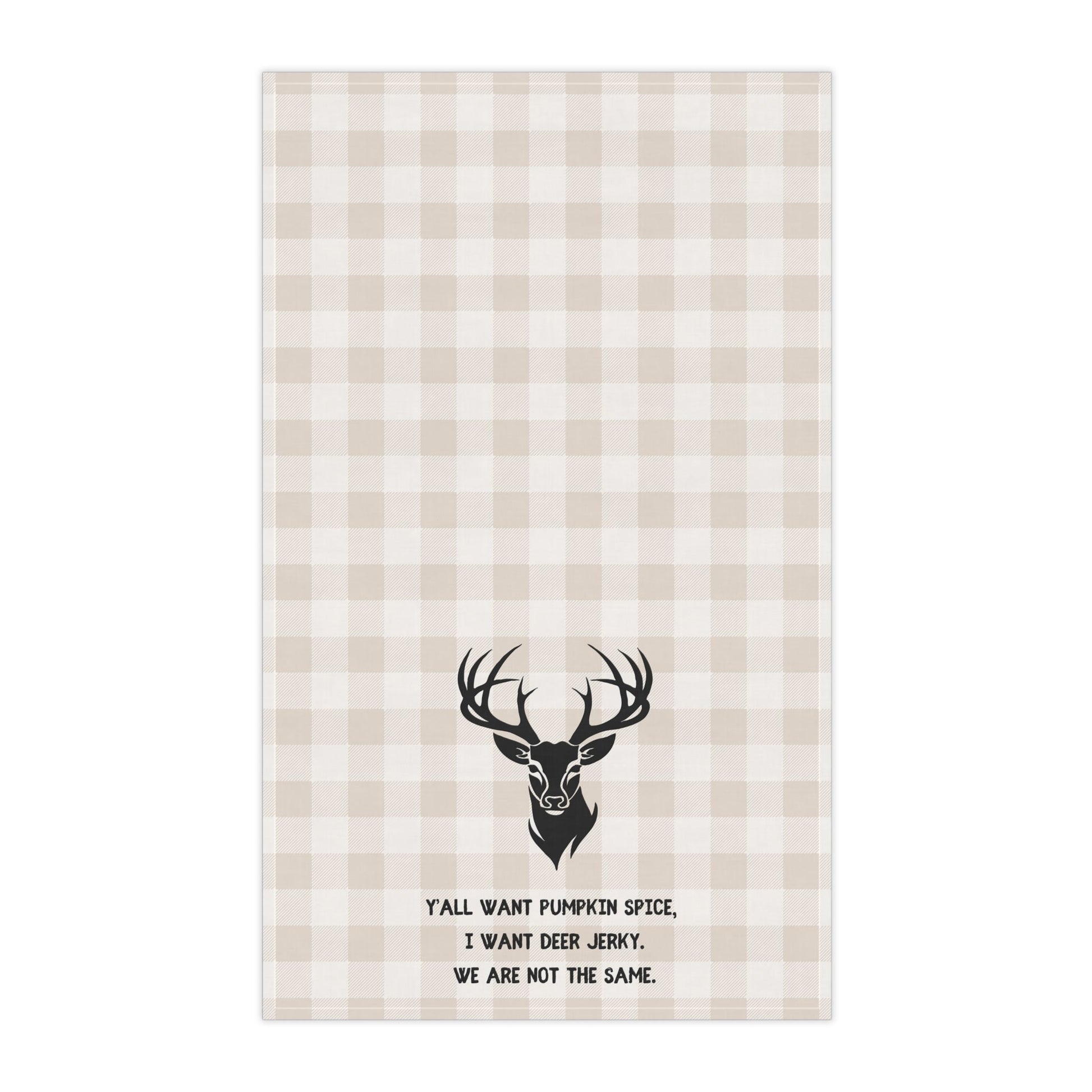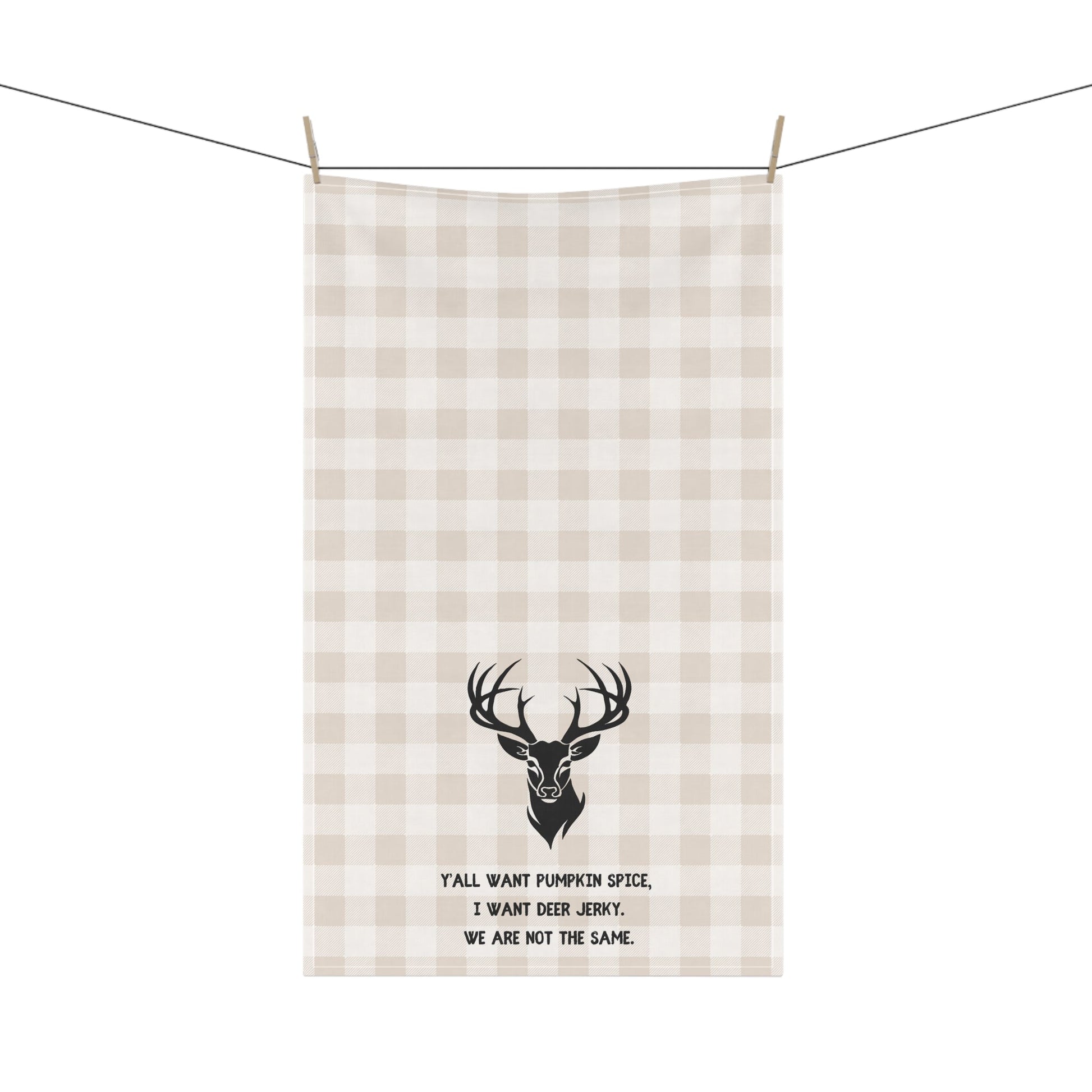 Tea Towel for Hunters - "Y'all Want Pumpkin Spice, I want Deer Jerky. We are not the same." Kitchen Decor, Gift for Home Chefs, Fall Decor, Funny Kitchen Towels