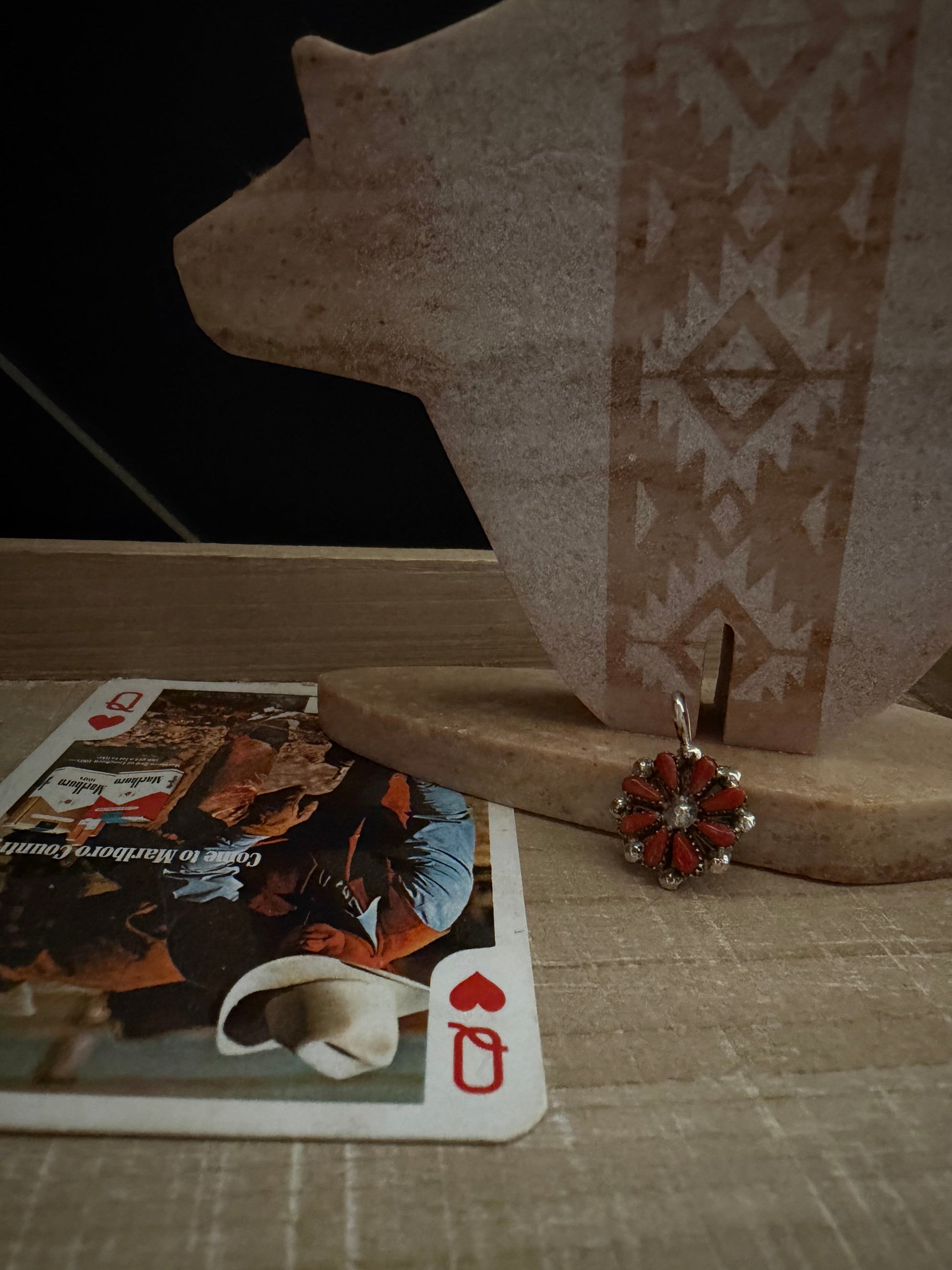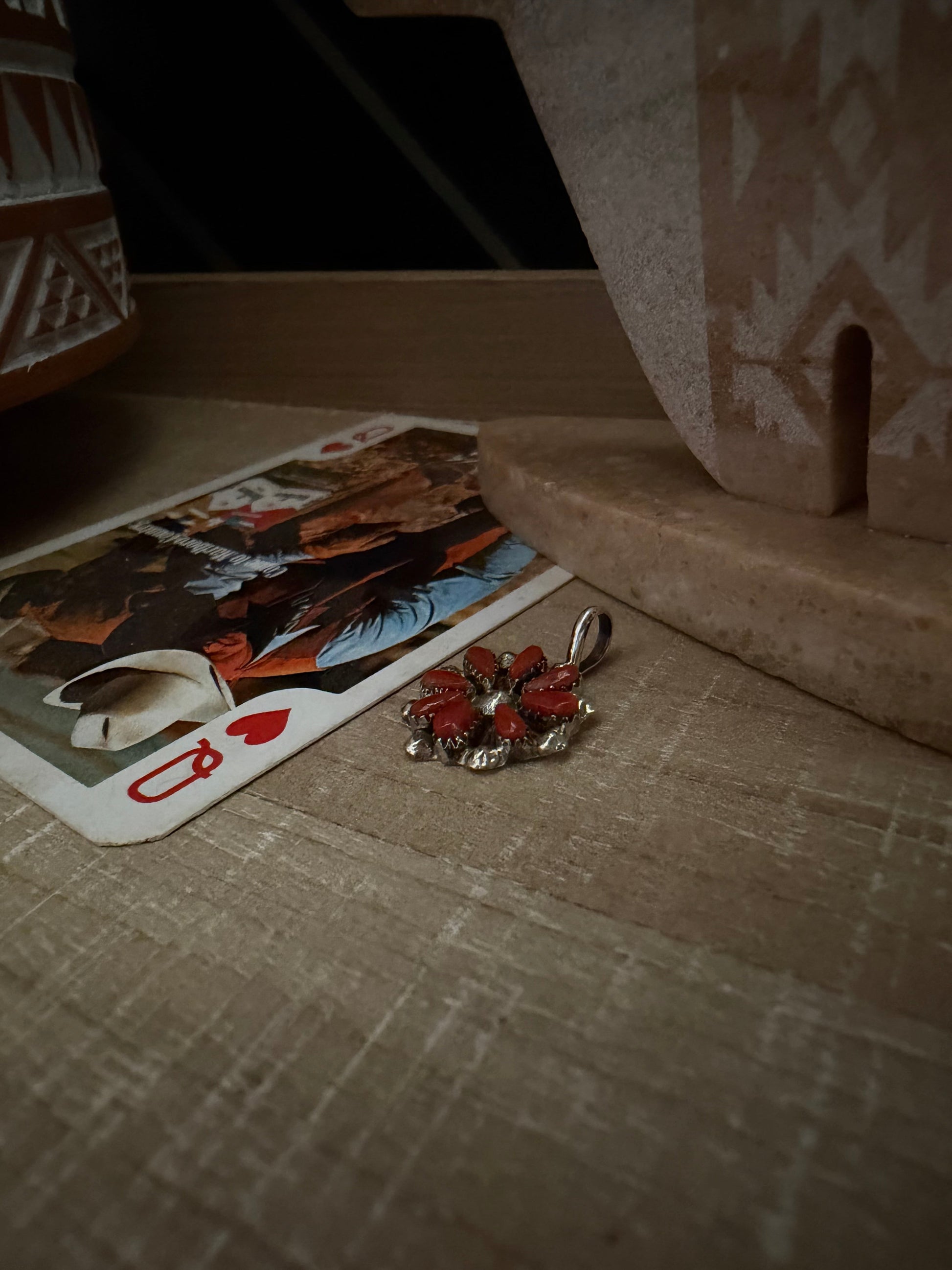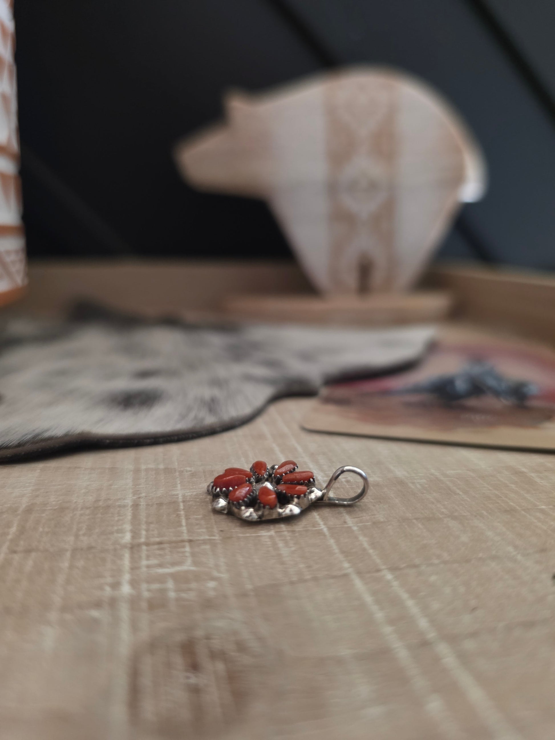 THE DAVID LEEKITY CORAL ZUNI PETIT POINT CLUSTER PENDANT